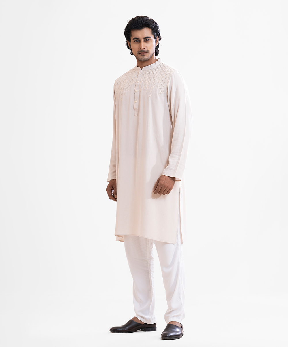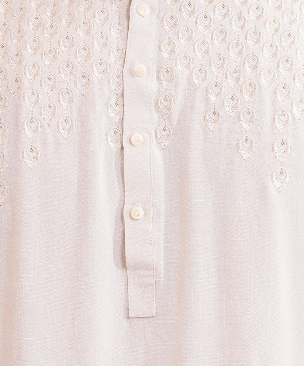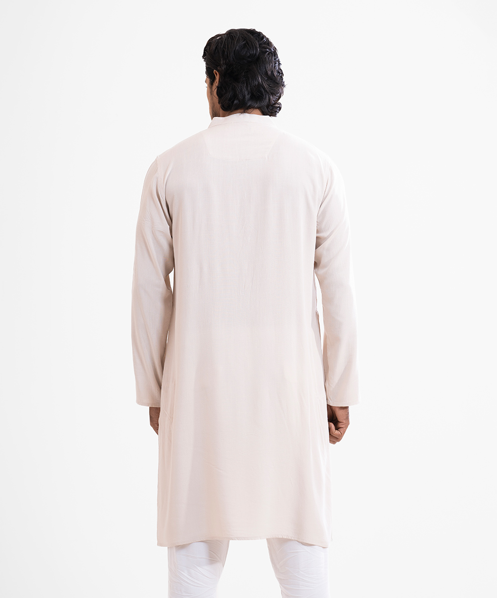 Light Beige Slab Cotton Semi Fitted Panjabi