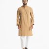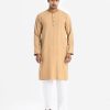 Men’s semi fitted panjabi in viscose fabric. Mandarin collar with line stitching, and inseam pockets.