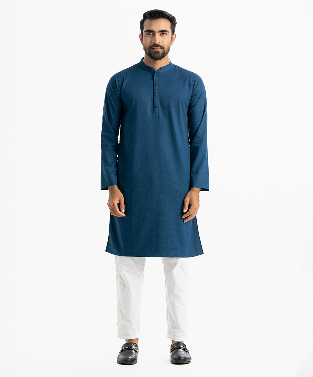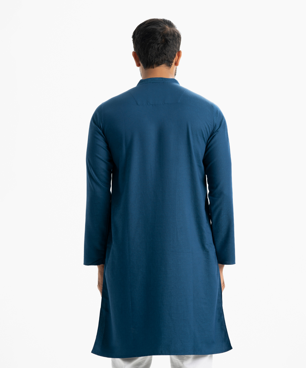 Blue Jacquard Semi Fitted Panjabi