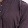 Men’s semi fit panjabi in jacquard cotton fabric. Mandarin collar with metal buttons on the placket. Embroidery at collar.
