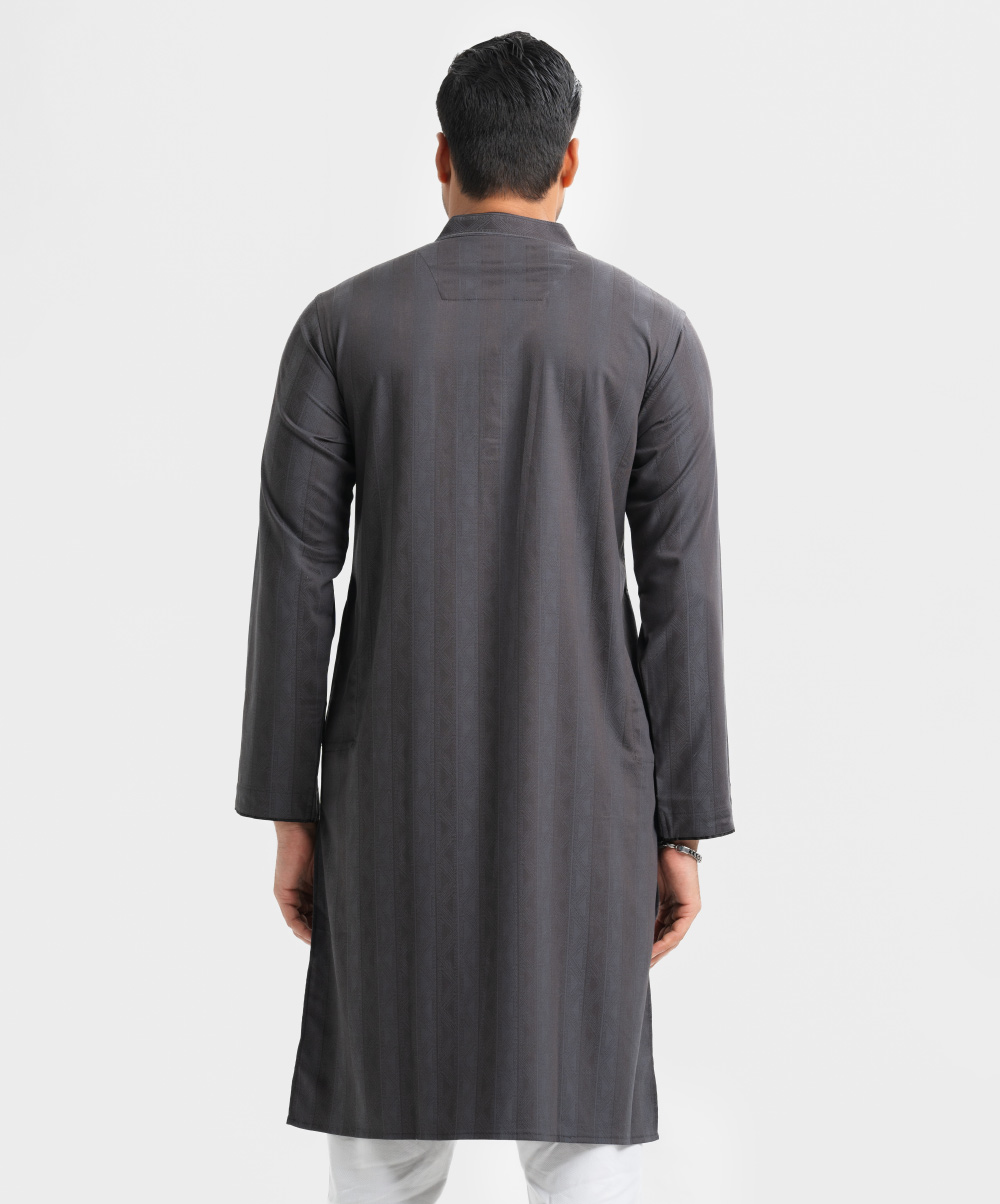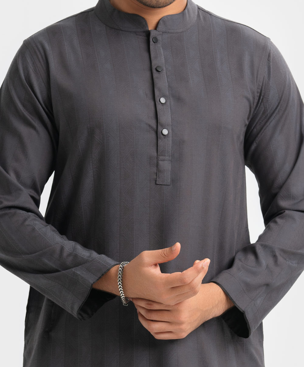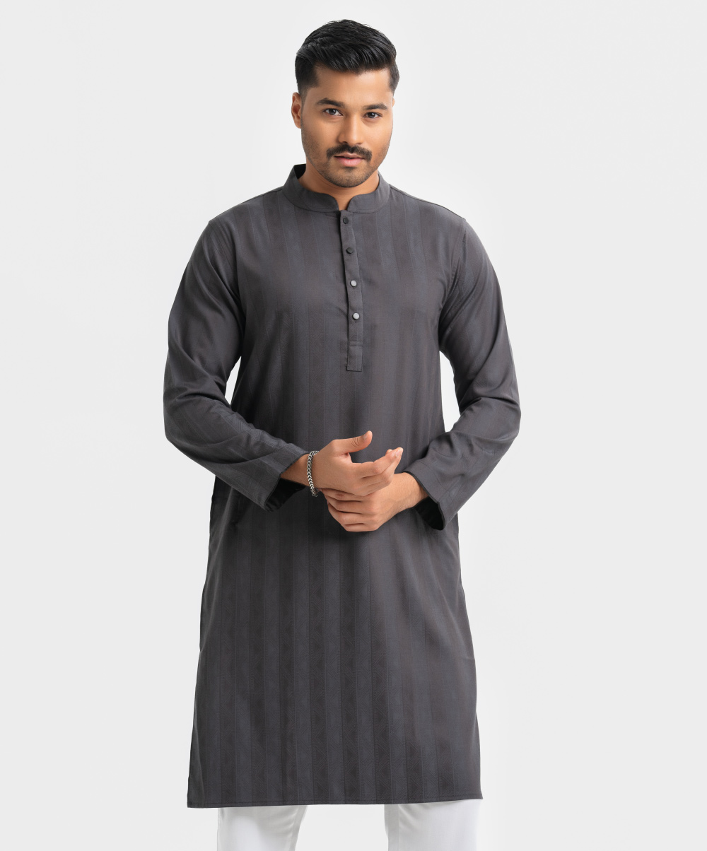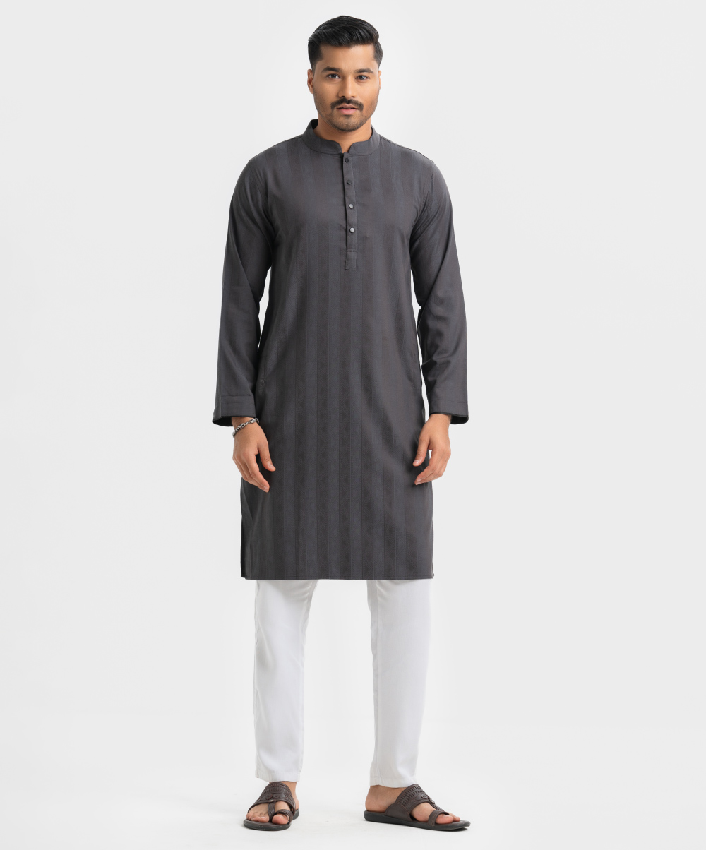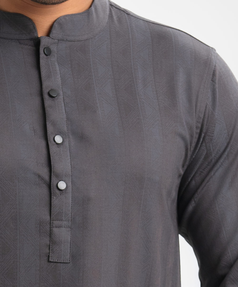 Men’s semi-fitted panjabi in jacquard fabric.Mandarin collar and inseam pockets.