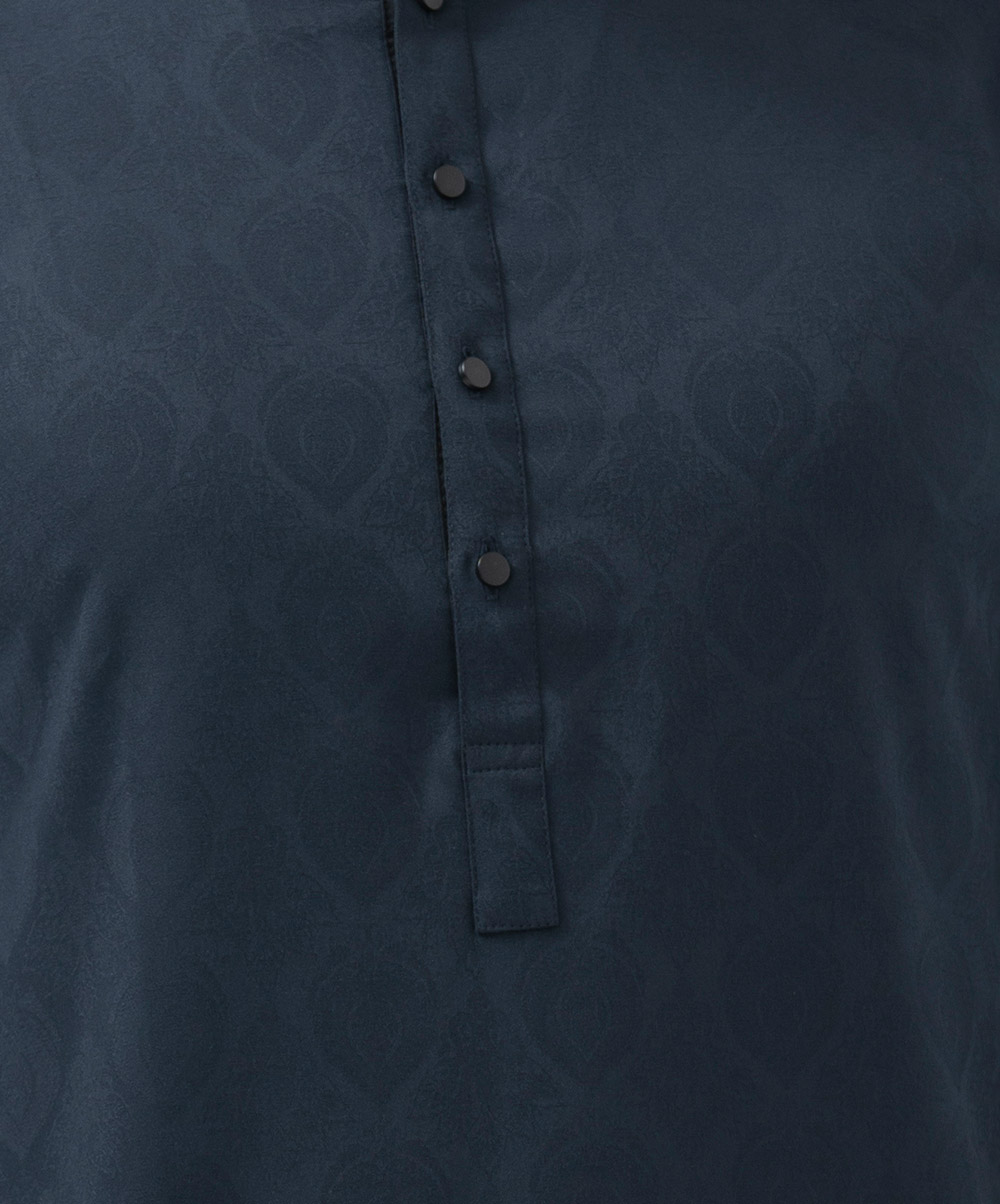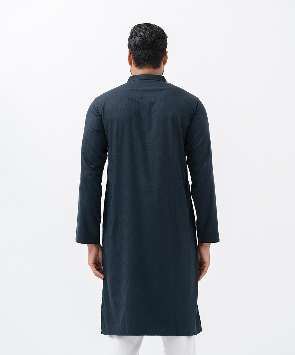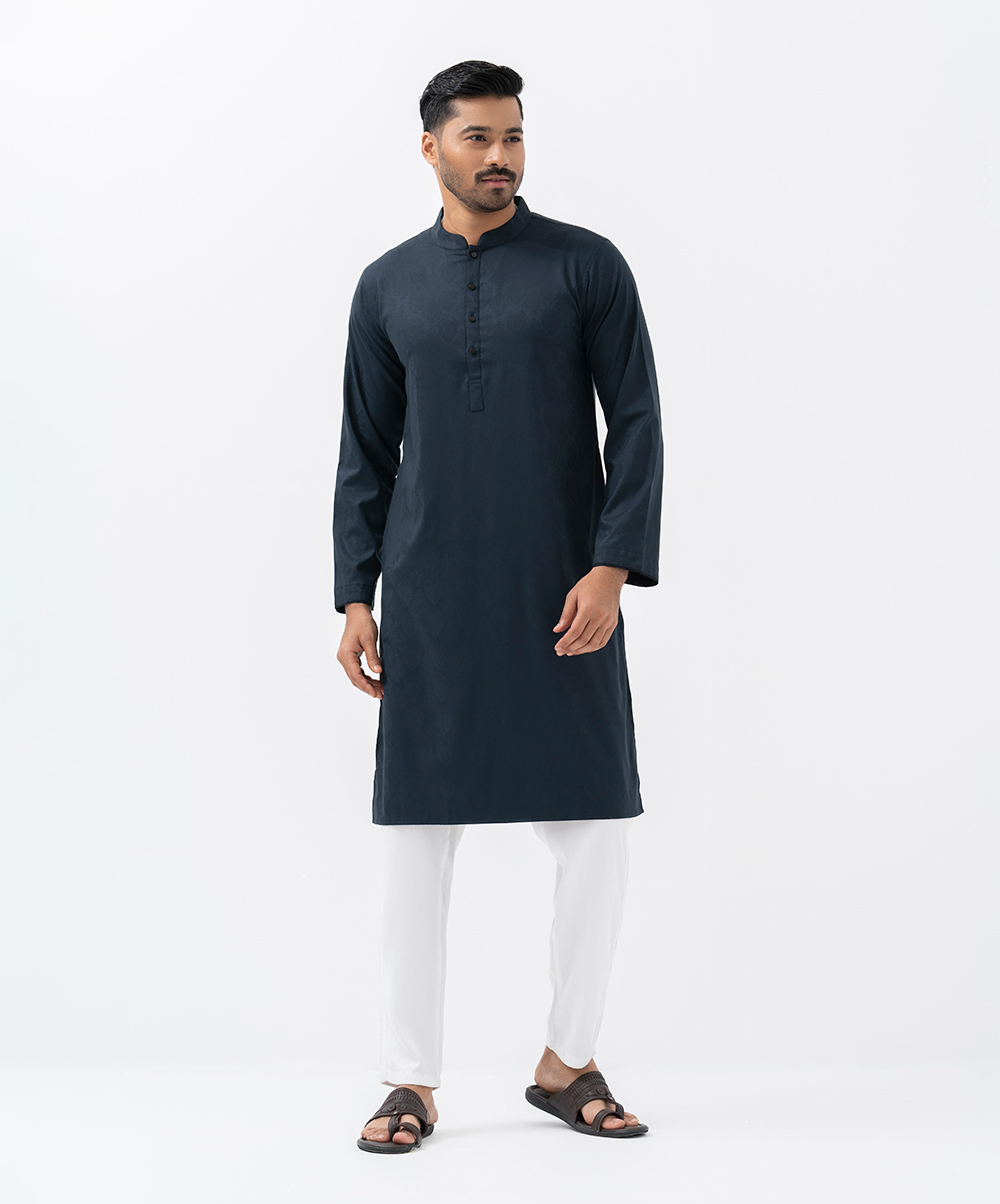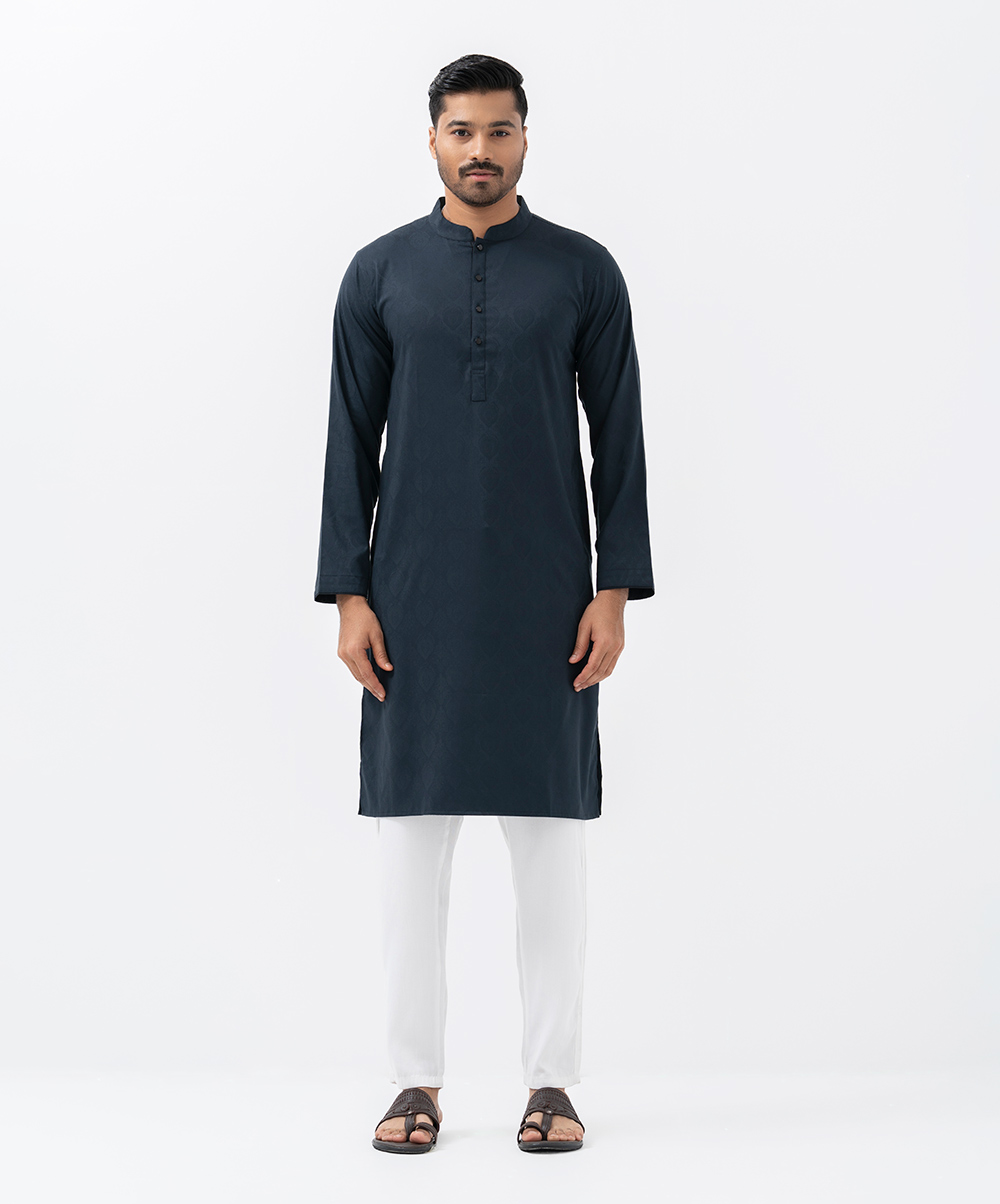 Men’s printed semi-fitted panjabi in jacquard fabric. Mandarin collar, inseam pockets and long sleeves.