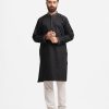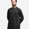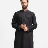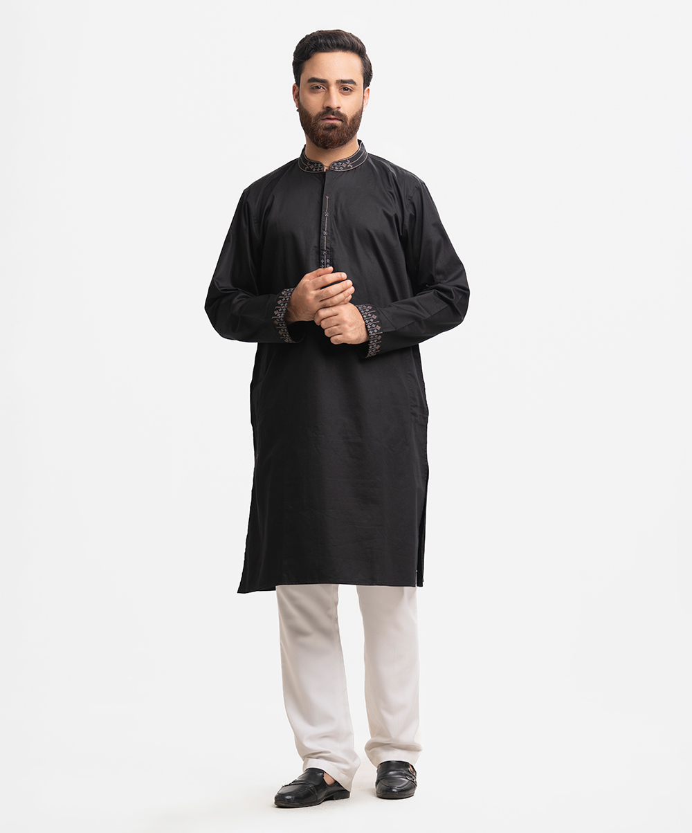Men’s semi fitted panjabi in cotton fabric. Long sleeves, inseam side pockets. Embroidery on the collar and placket.