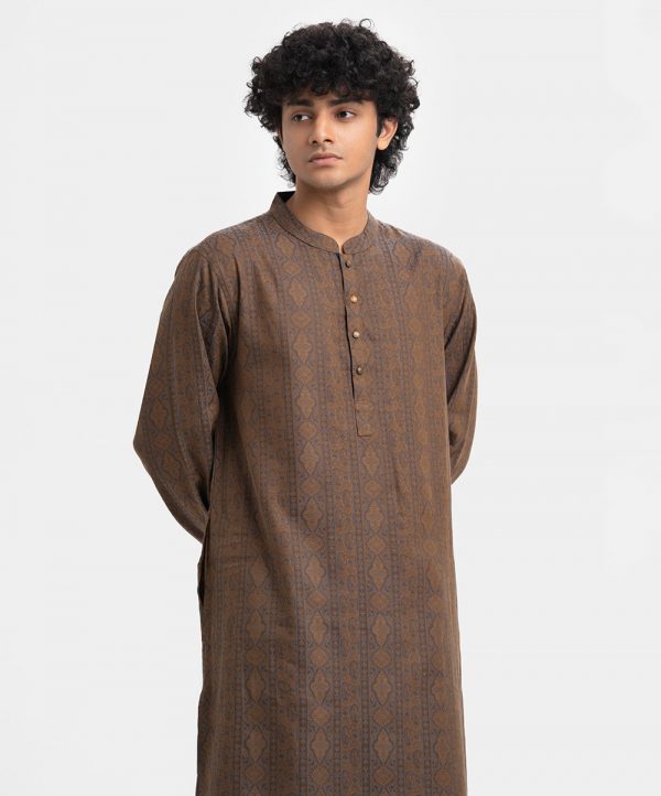 Brown Jacquard Semi Fitted Panjabi