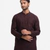 Burgundy Cotton Semi Fit Panjabi