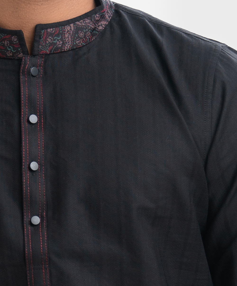Black Jacquard Semi Fit Panjabi