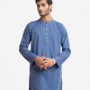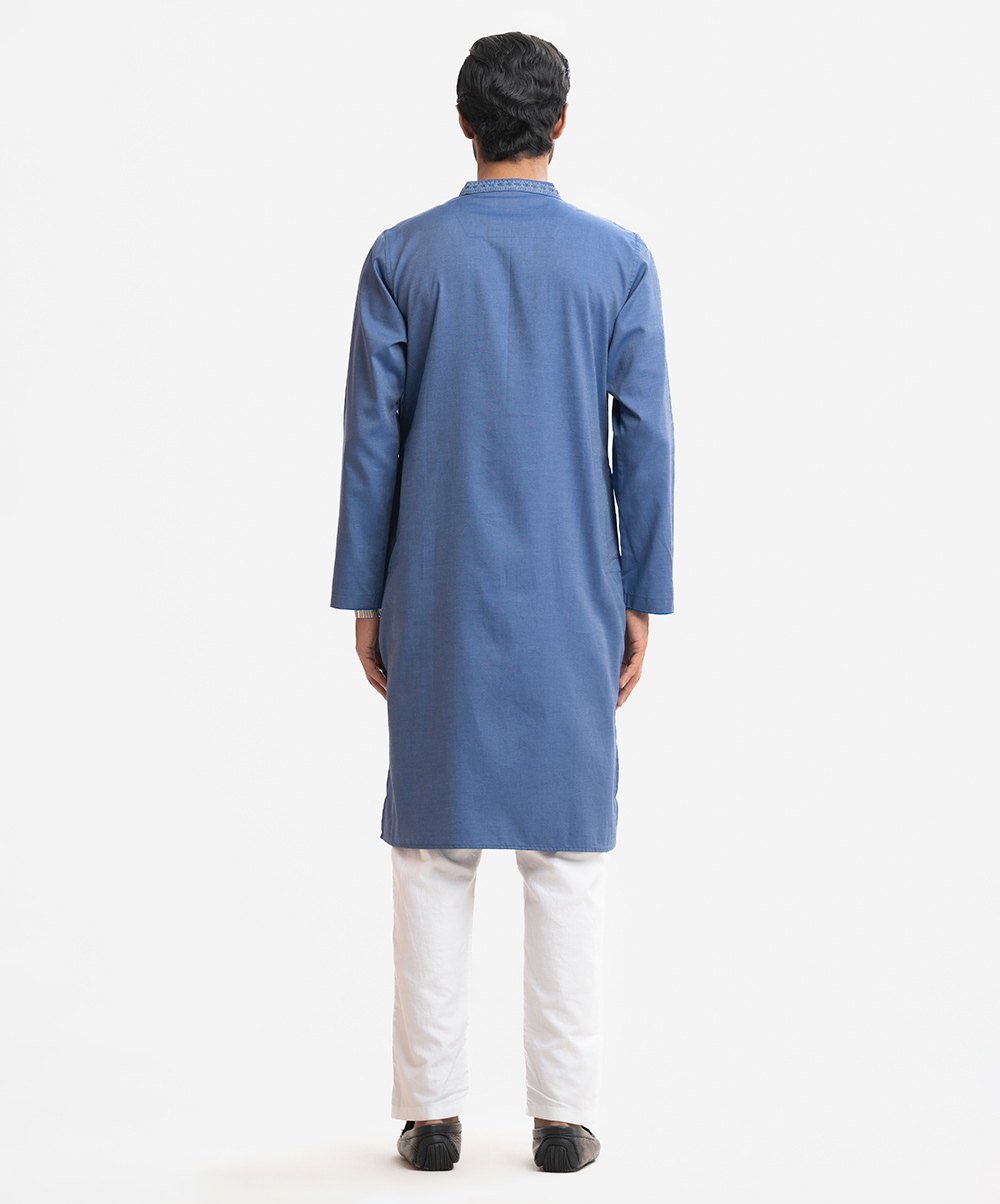 Blue Cotton Semi Fitted Panjabi