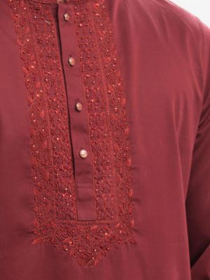 Maroon Jacquard Semi Fit Panjabi