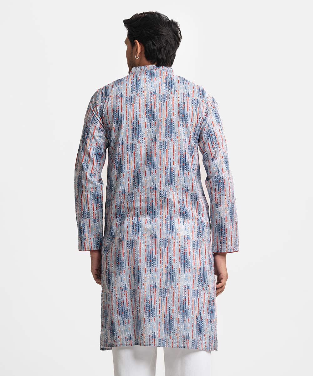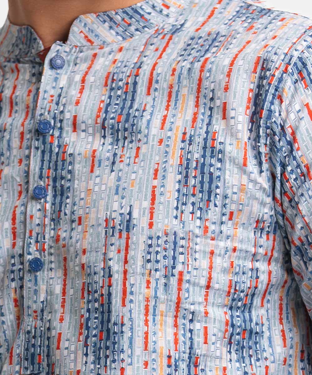 Mandarin collar semi-fitted panjabi in cotton fabric. Inseam side pockets.
