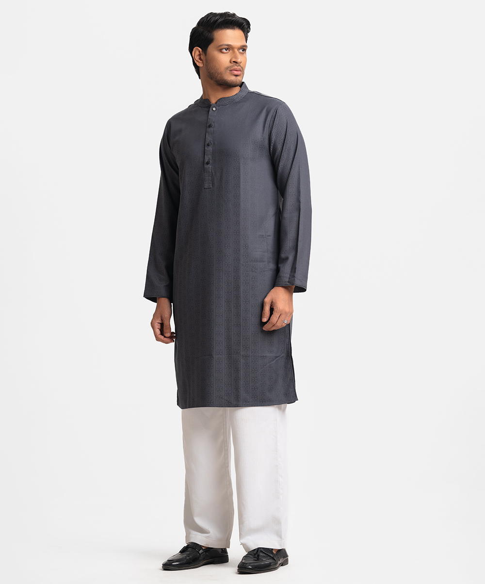 Gray Jacquard Semi-Fitted Panjabi
