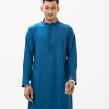 Blue Jacquard Cotton Fitted Panjabi