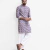 Men’s fitted panjabi in ethnic printed cotton fabric. Mandarin collar and inseam pockets.