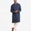 Men’s fitted panjabi in jacquard fabric. Full Sleeve, karchupi work on mandarin collar. inseam pockets.