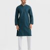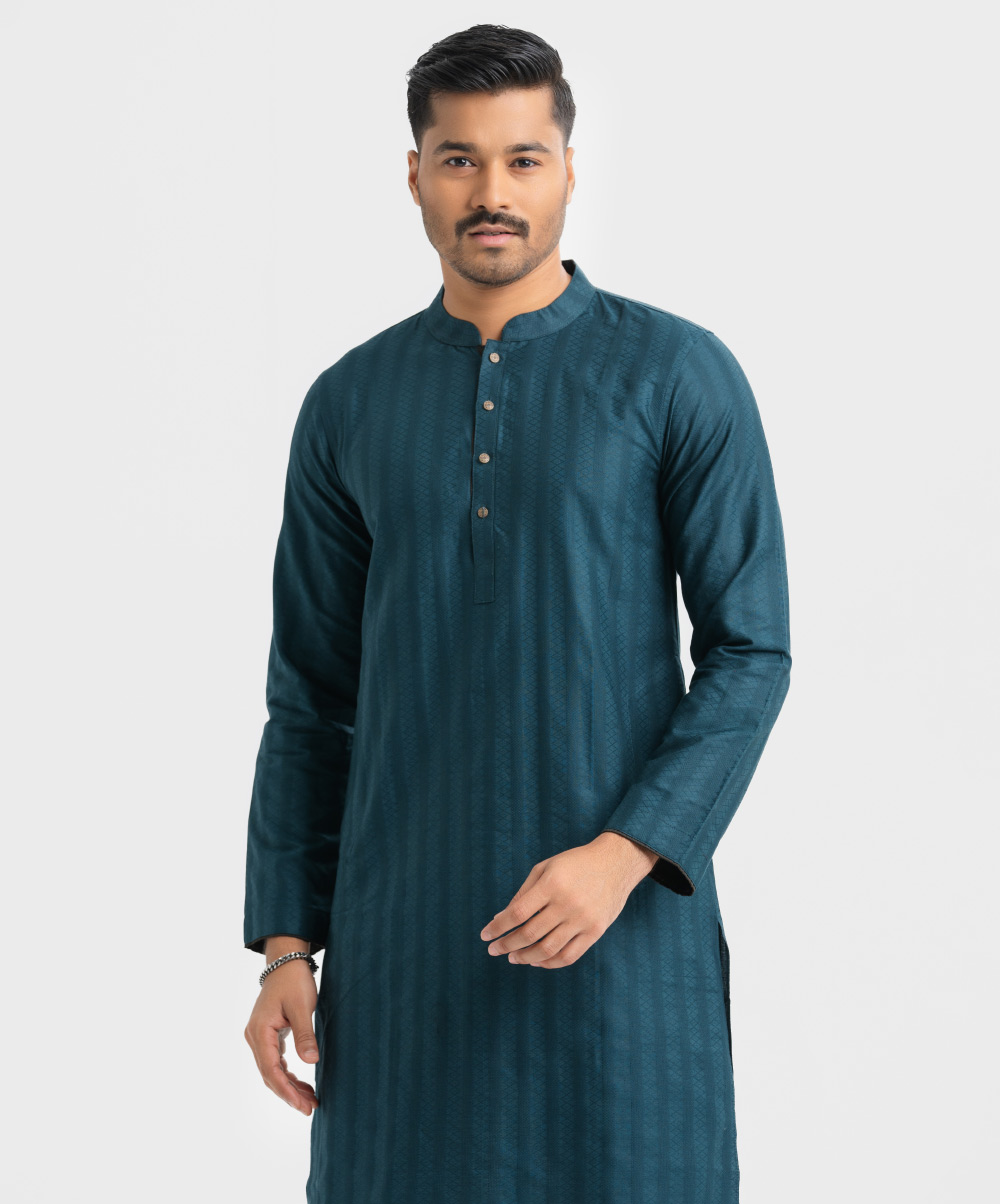 Men’s slim fitted panjabi in cotton jacquard fabric. Mandarin collar with metal buttons on the placket & full sleeves.