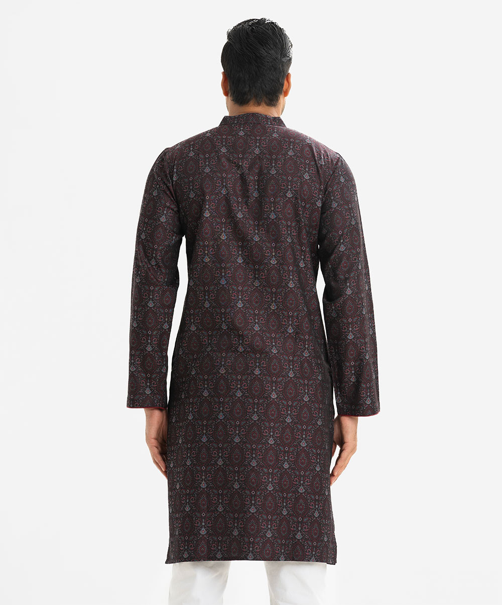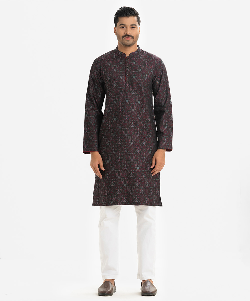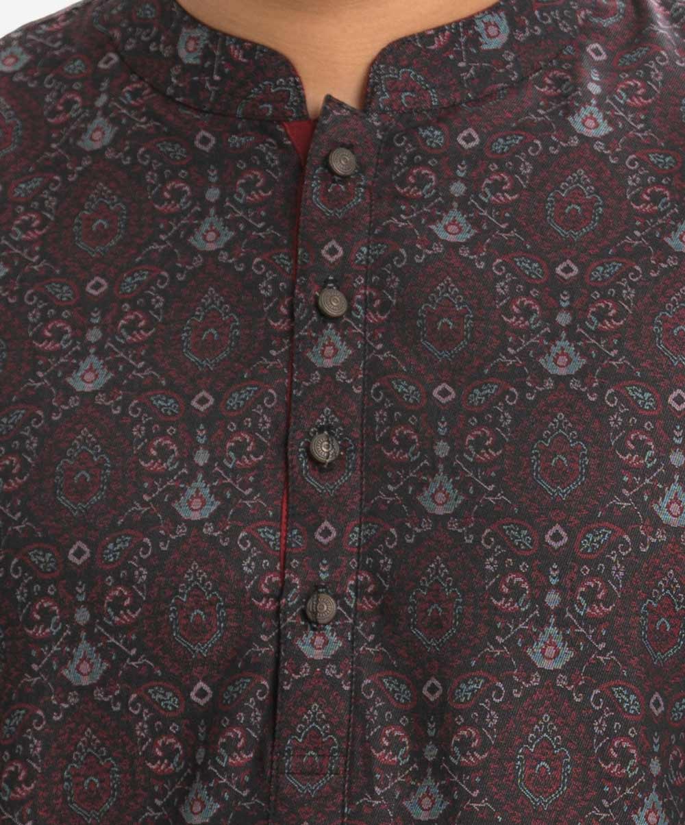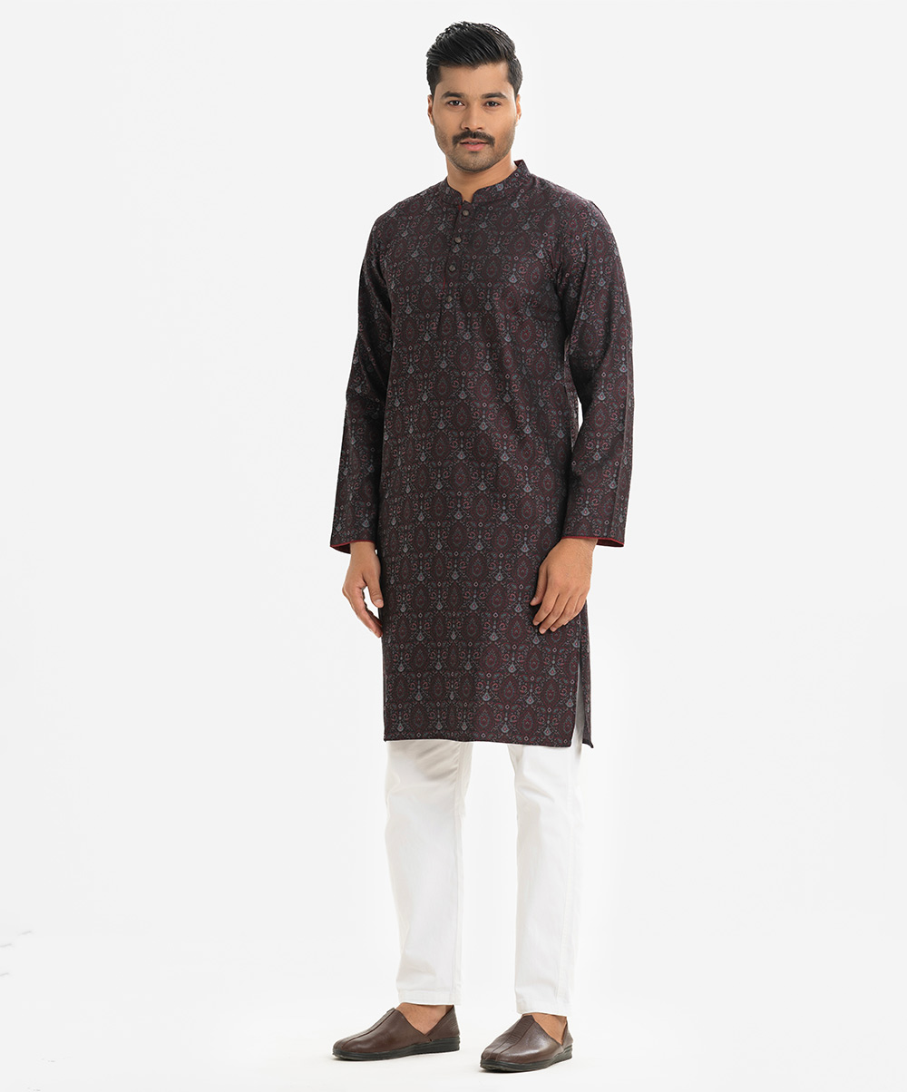 Men’s printed slim-fitted panjabi in jacquard fabric. Mandarin collar, inseam pockets and long sleeves.