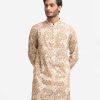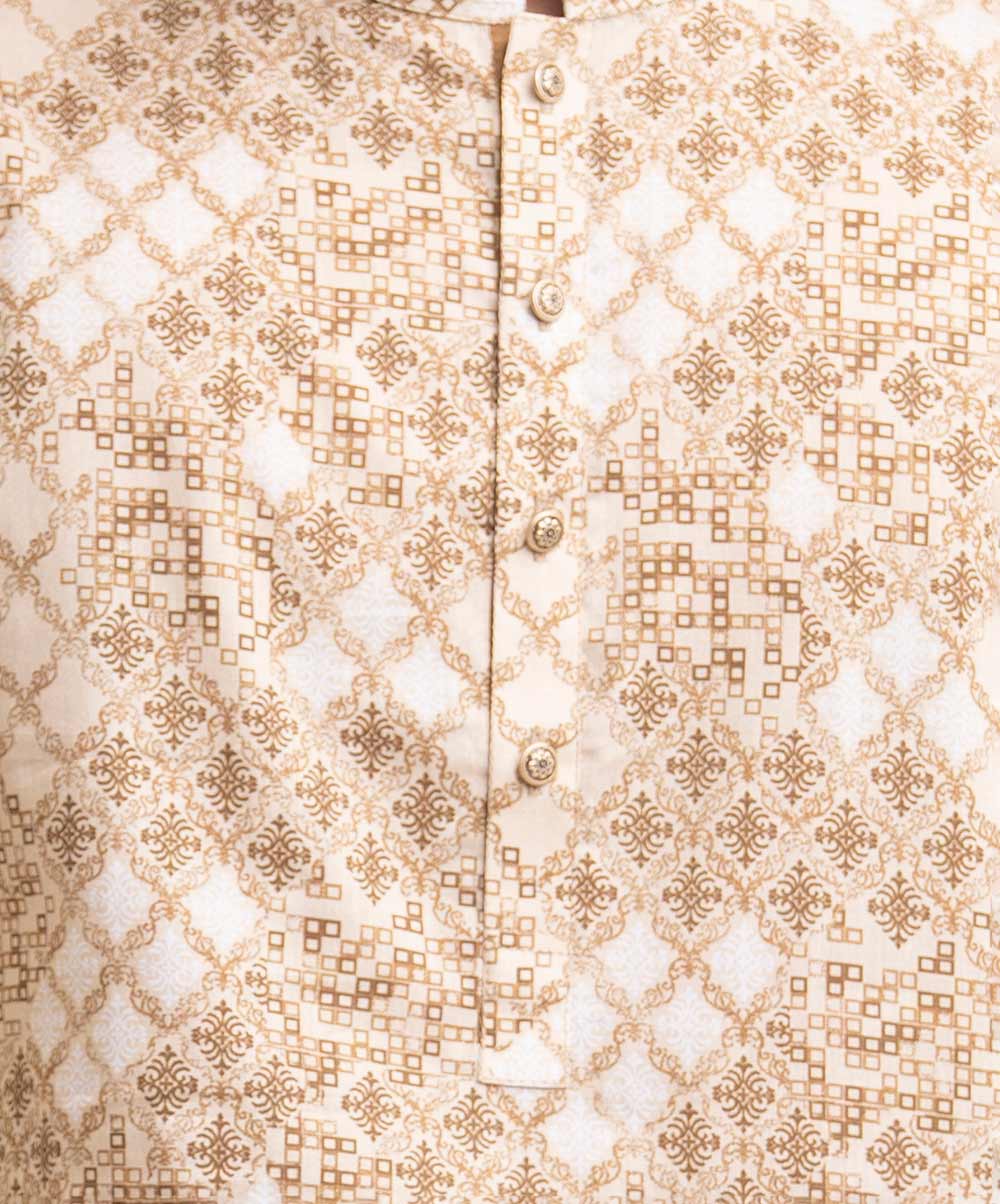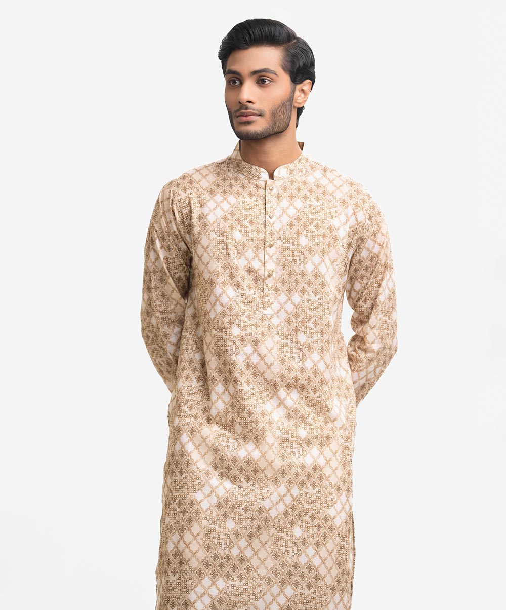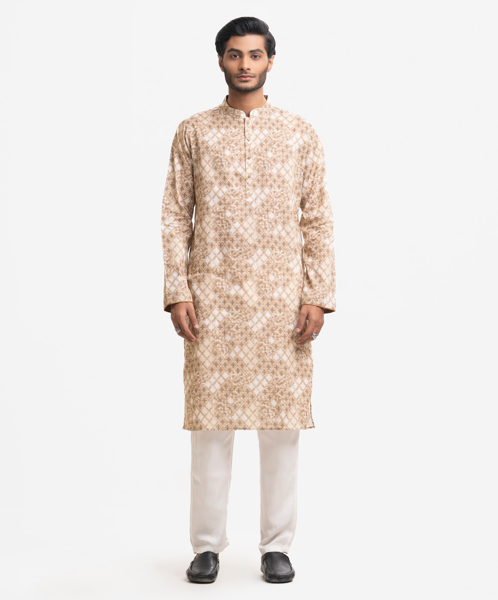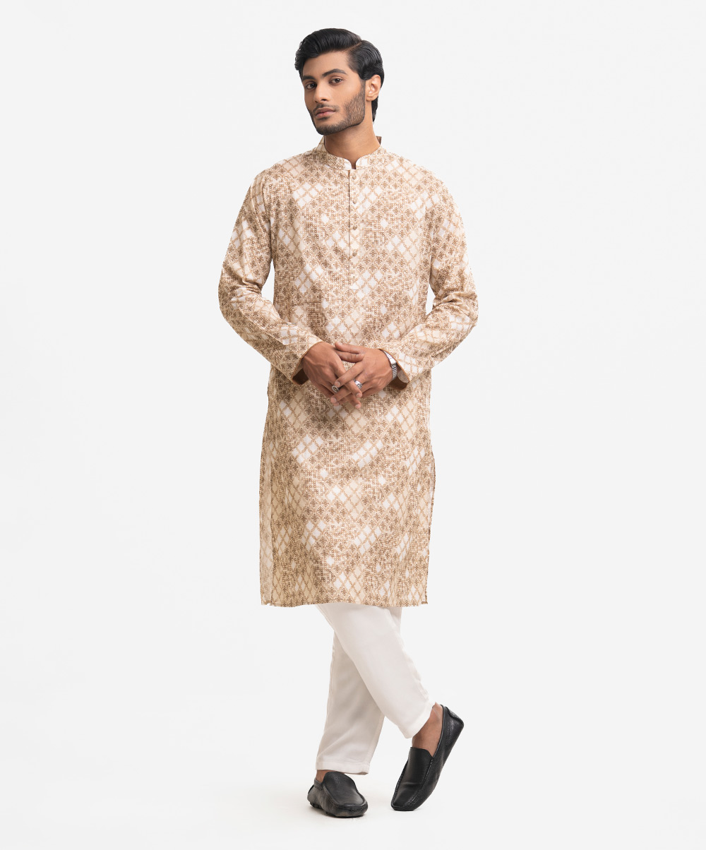 Fitted panjabi in cotton fabric with a mandarin collar, long sleeves and inseam side pockets.