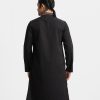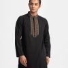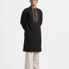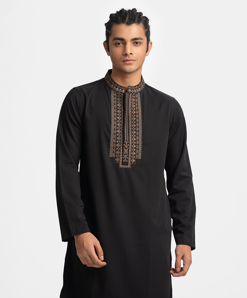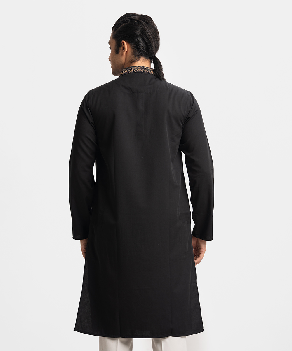 Ethnic panjabi in cotton fabric. Embroidery on the hidden button placket and collar. Inseam side pockets.
