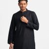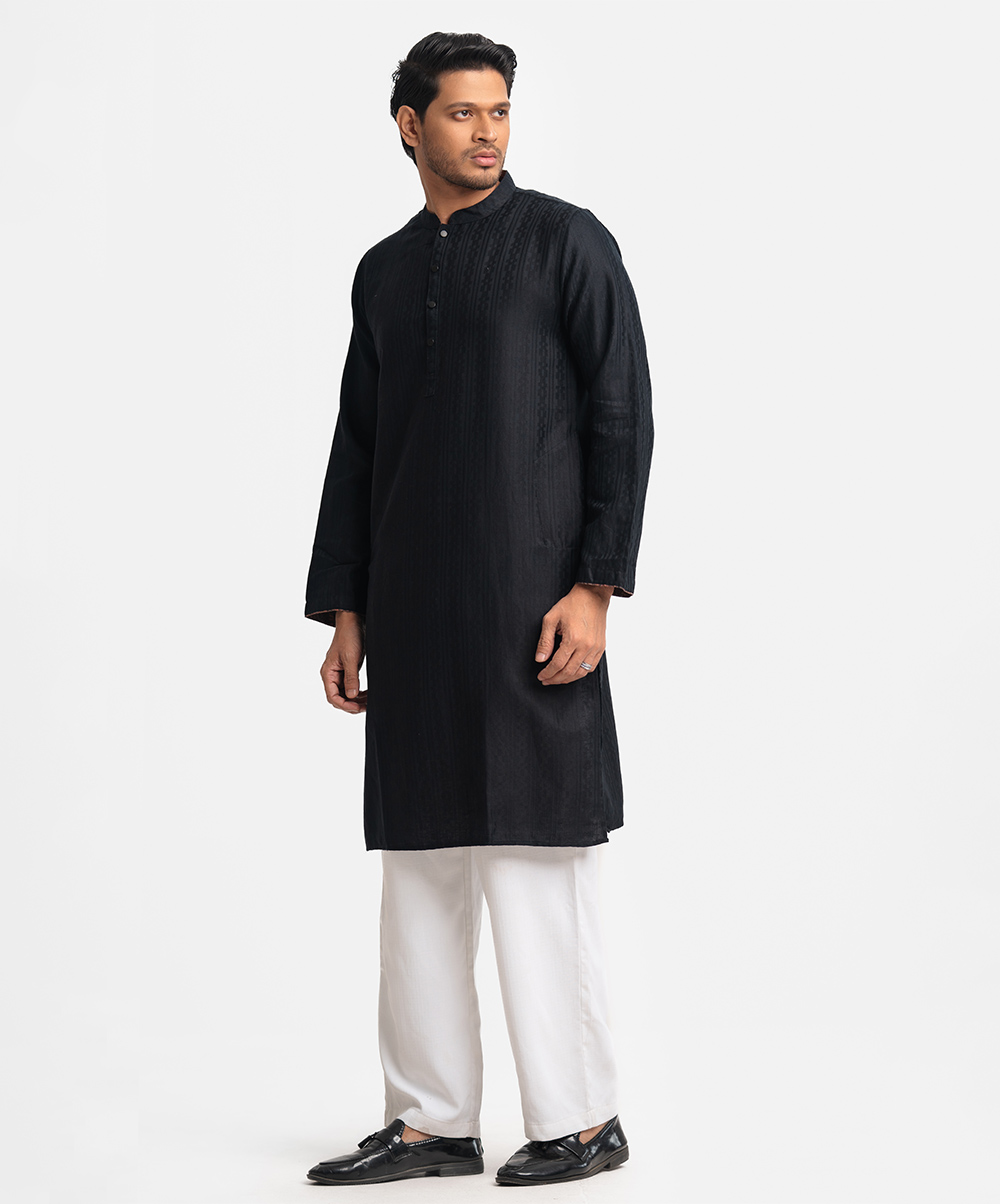 Black Cotton Jacquard Fitted Panjabi