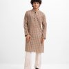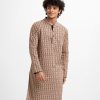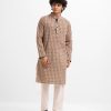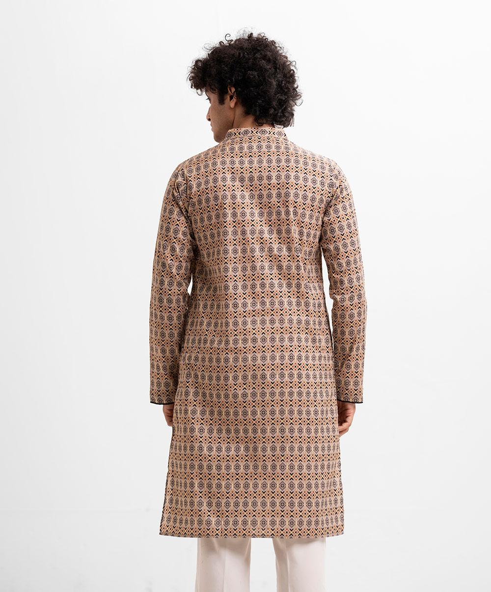 Fitted Panjabi in cotton fabric. Band collar with inseam pockets on the sides.