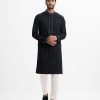 Classic fitted panjabi in blended jacquard fabric with button closure and inseam side pockets. Embroidery on the collar and placket.