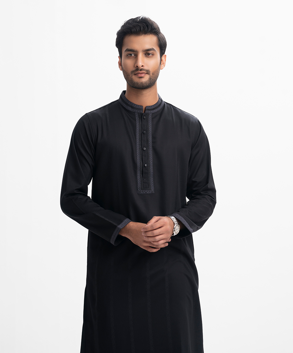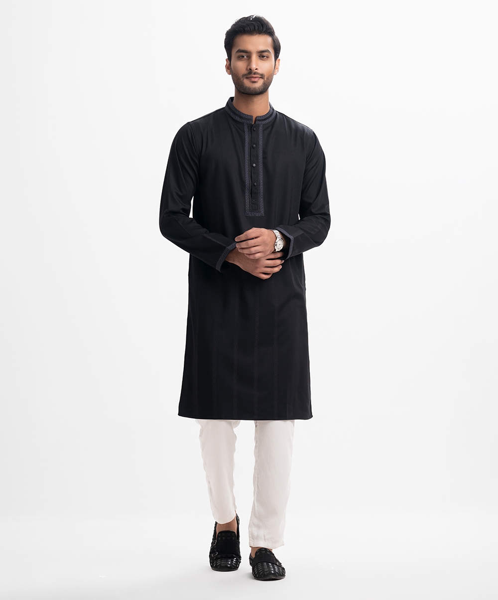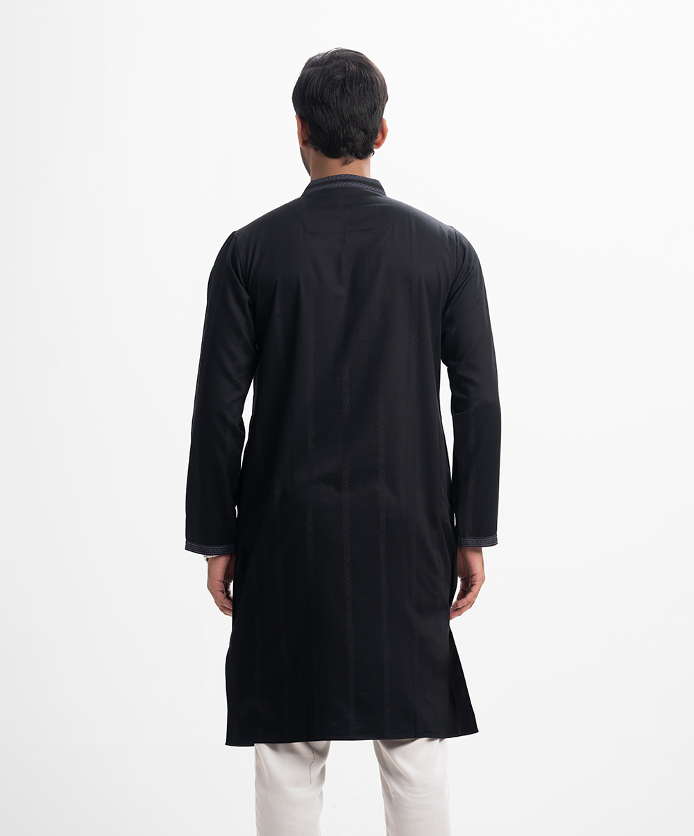 Black Jacquard Fitted Panjabi