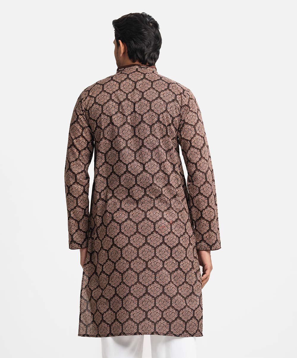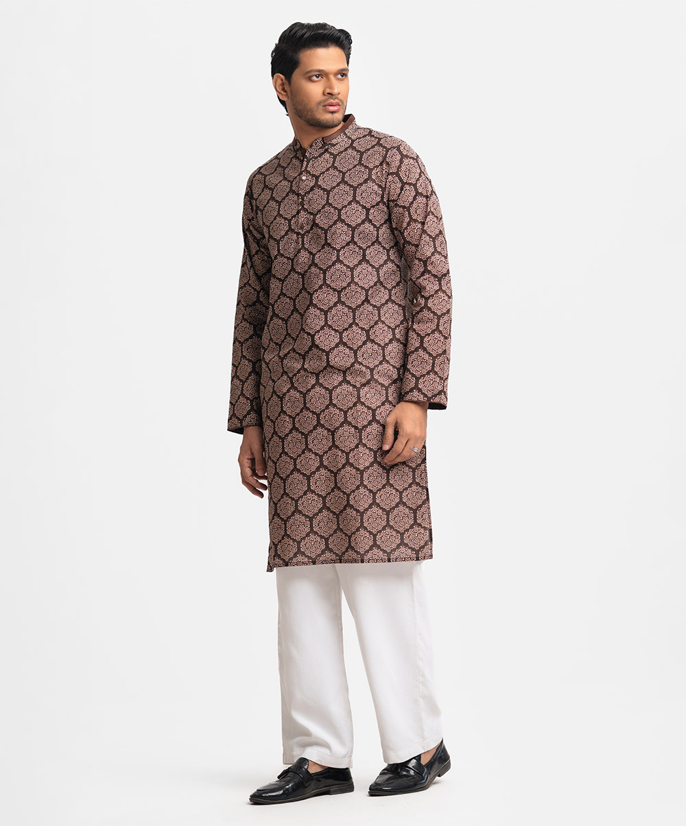 Slim fit Panjabi in cotton fabric. Mandarin collar with matching pleat. Inseam side pockets.
