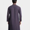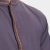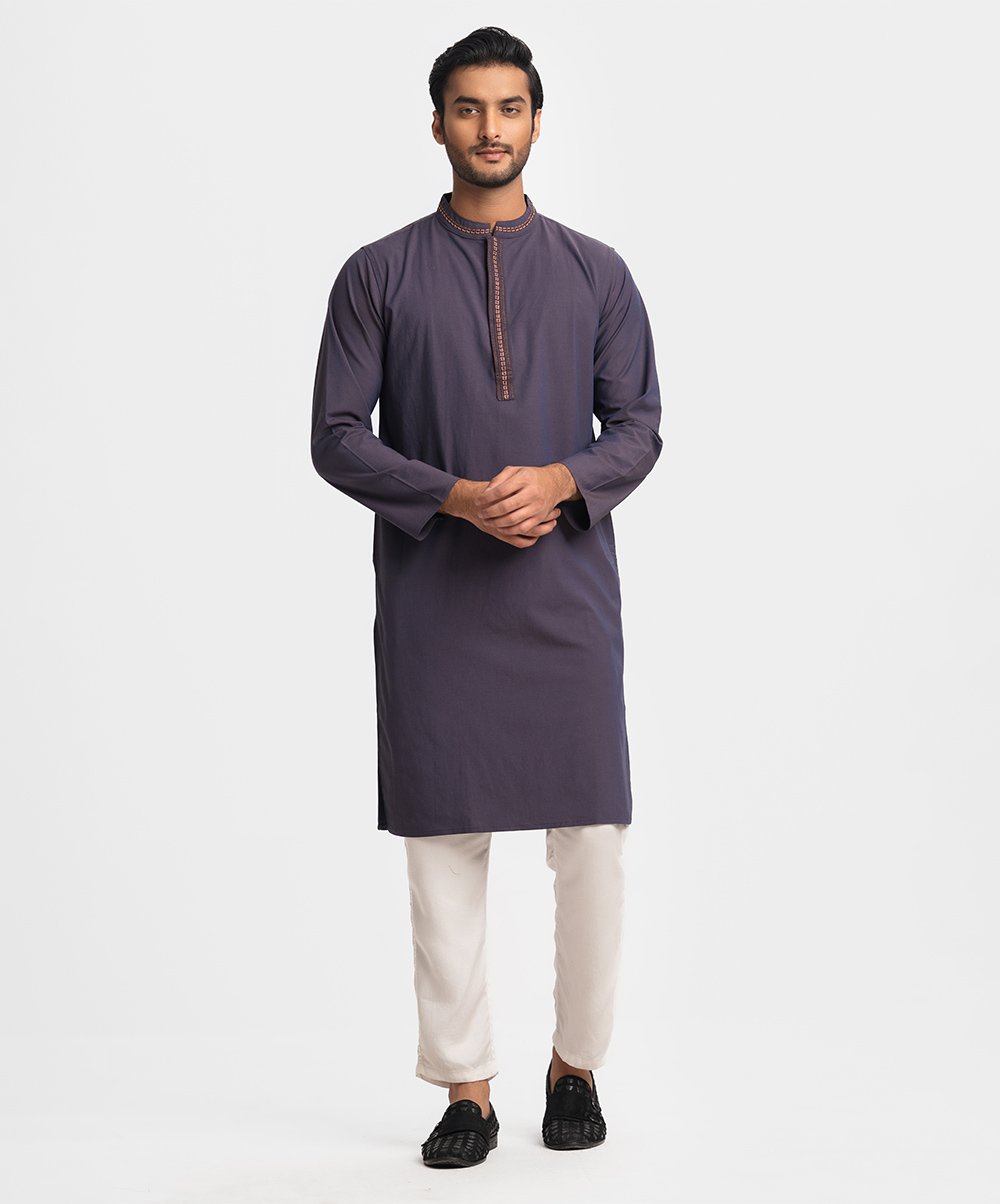 Fitted panjabi in blended jacquard fabric. Embroidery on the collar and hidden button placket. Inseam side pockets.