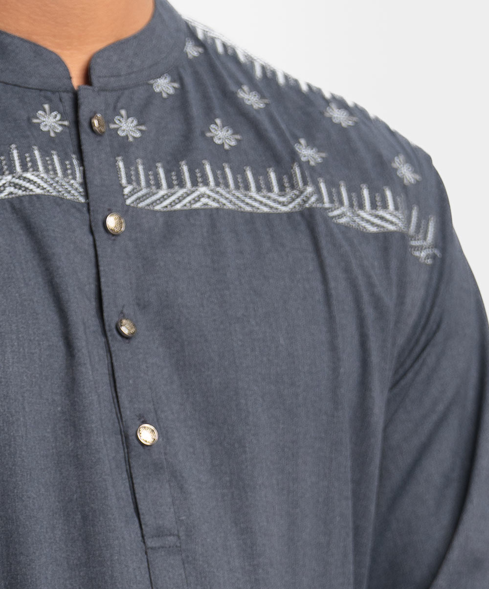 Charcoal Grey Blended Fitted Panjabi