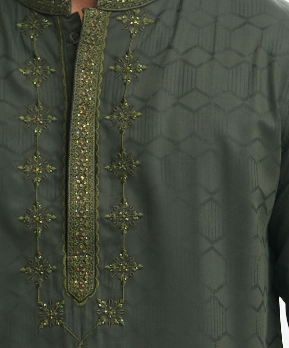 Green Jacquard Fitted Panjabi