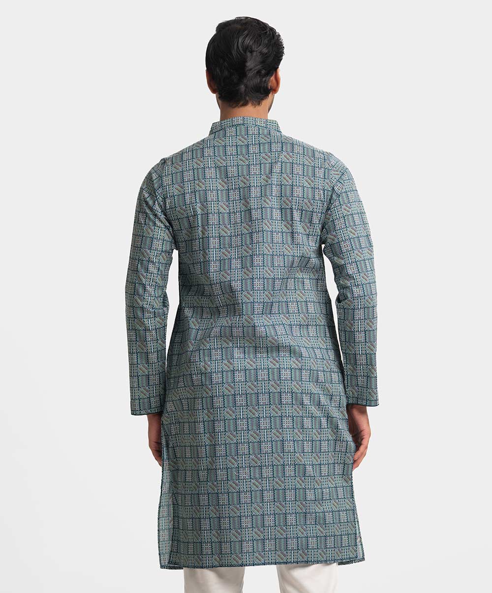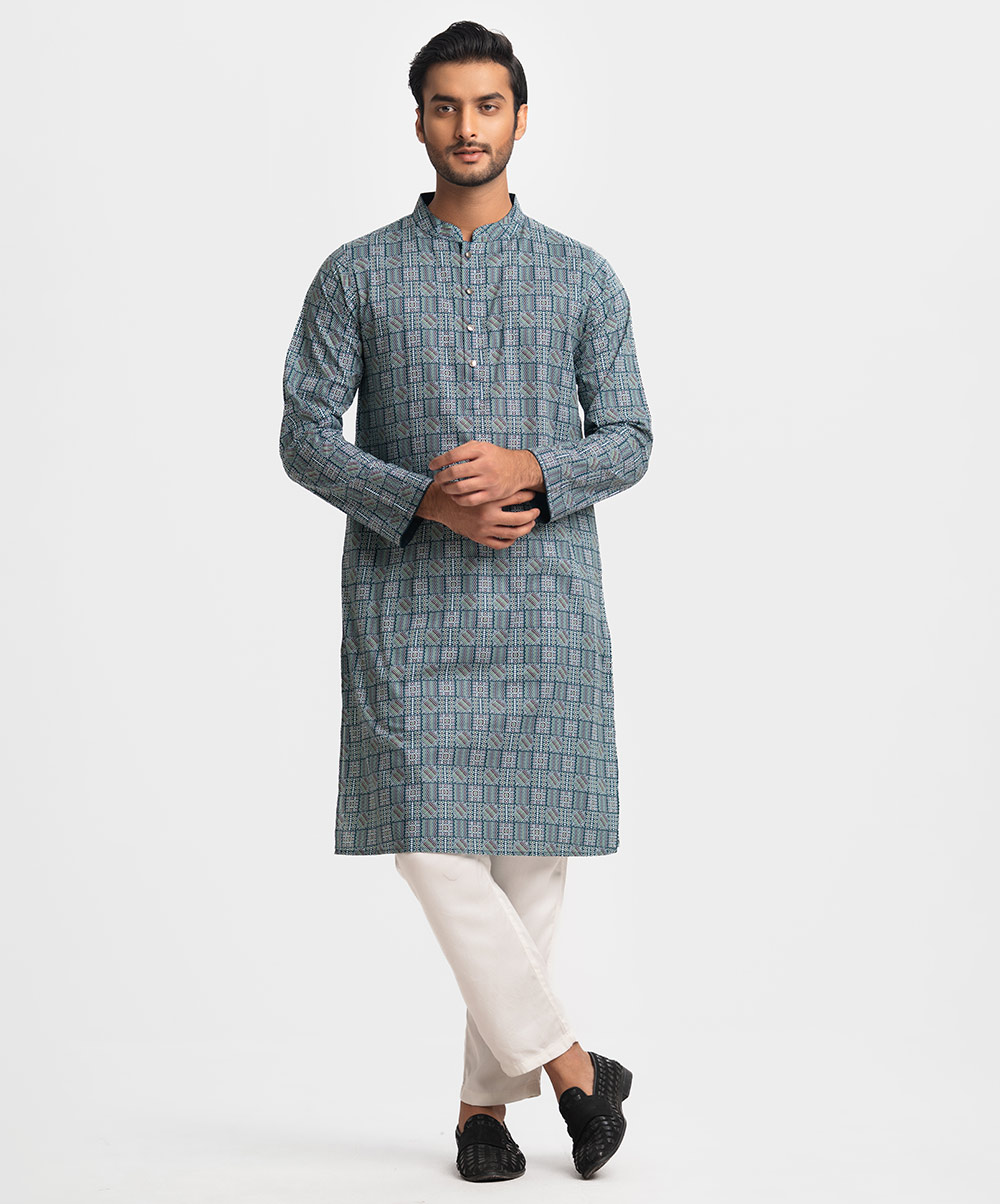 Blue Cotton Fitted Panjabi