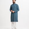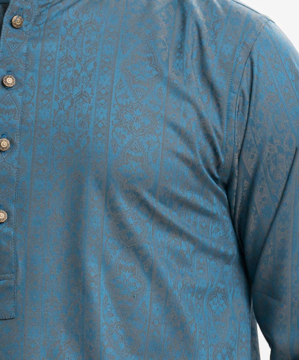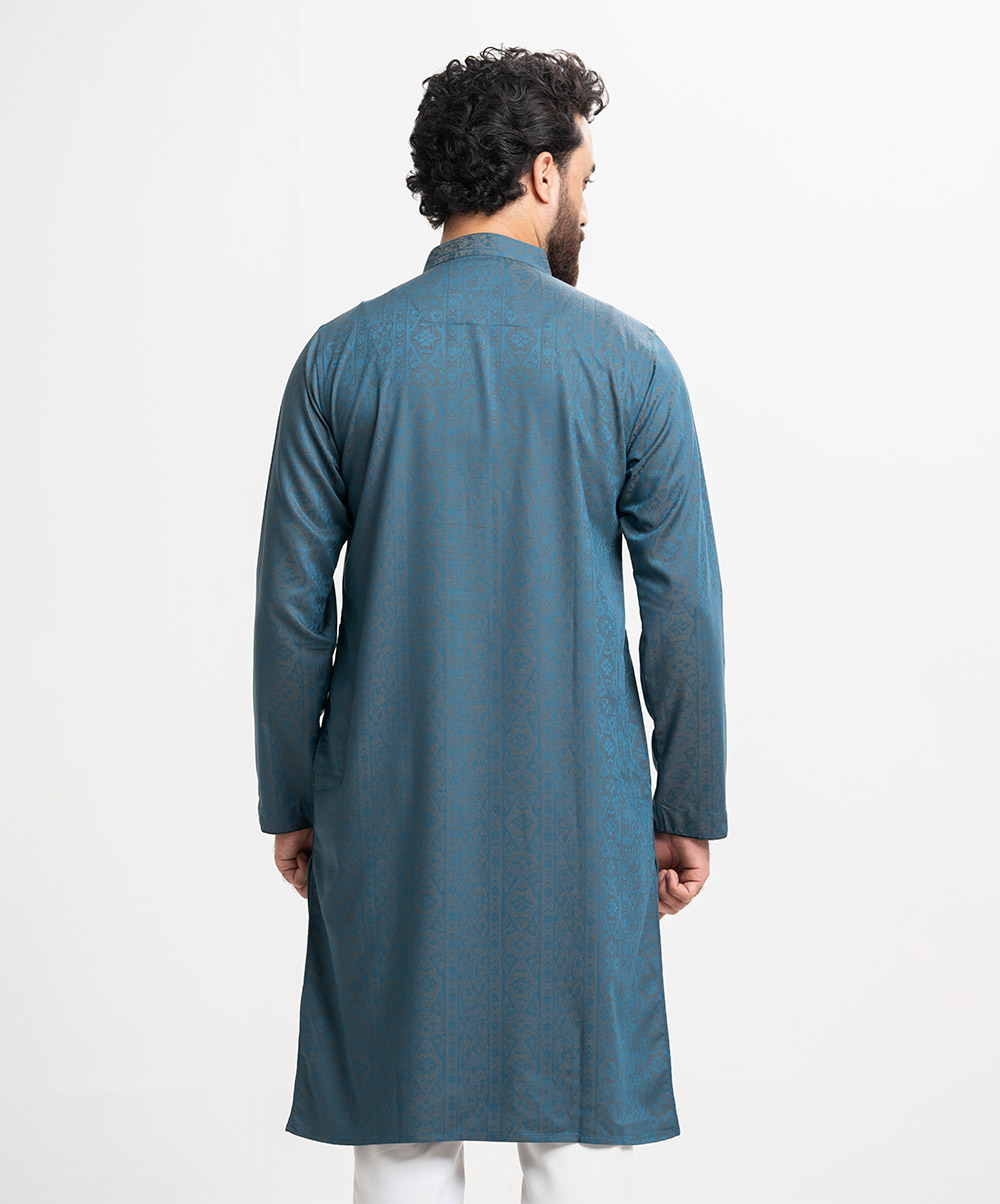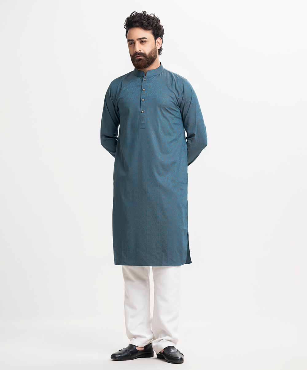 Classic fitted panjabi in bamboo jacquard fabric. Long sleeves, inseam side pockets.