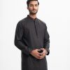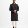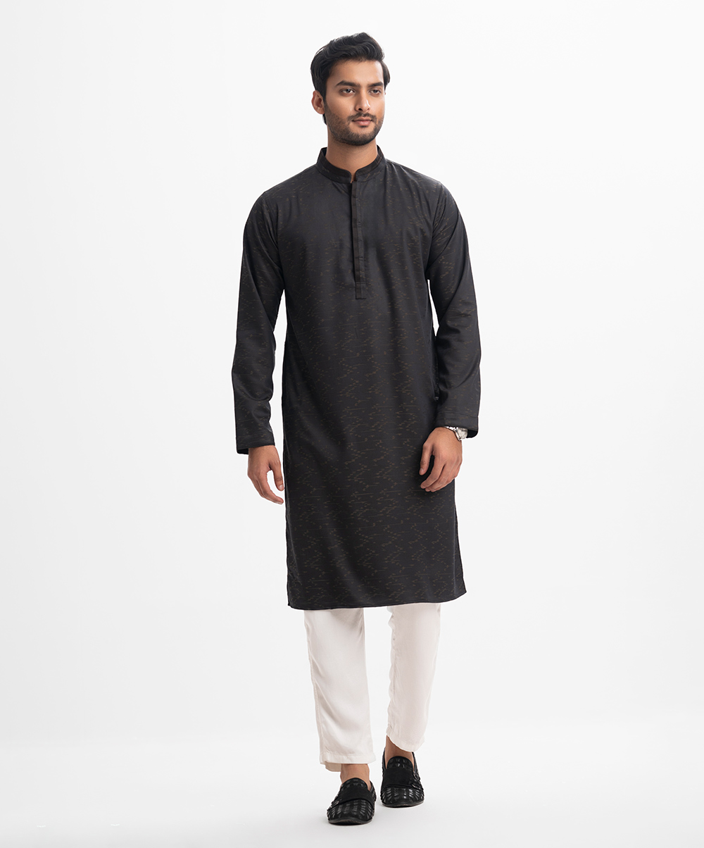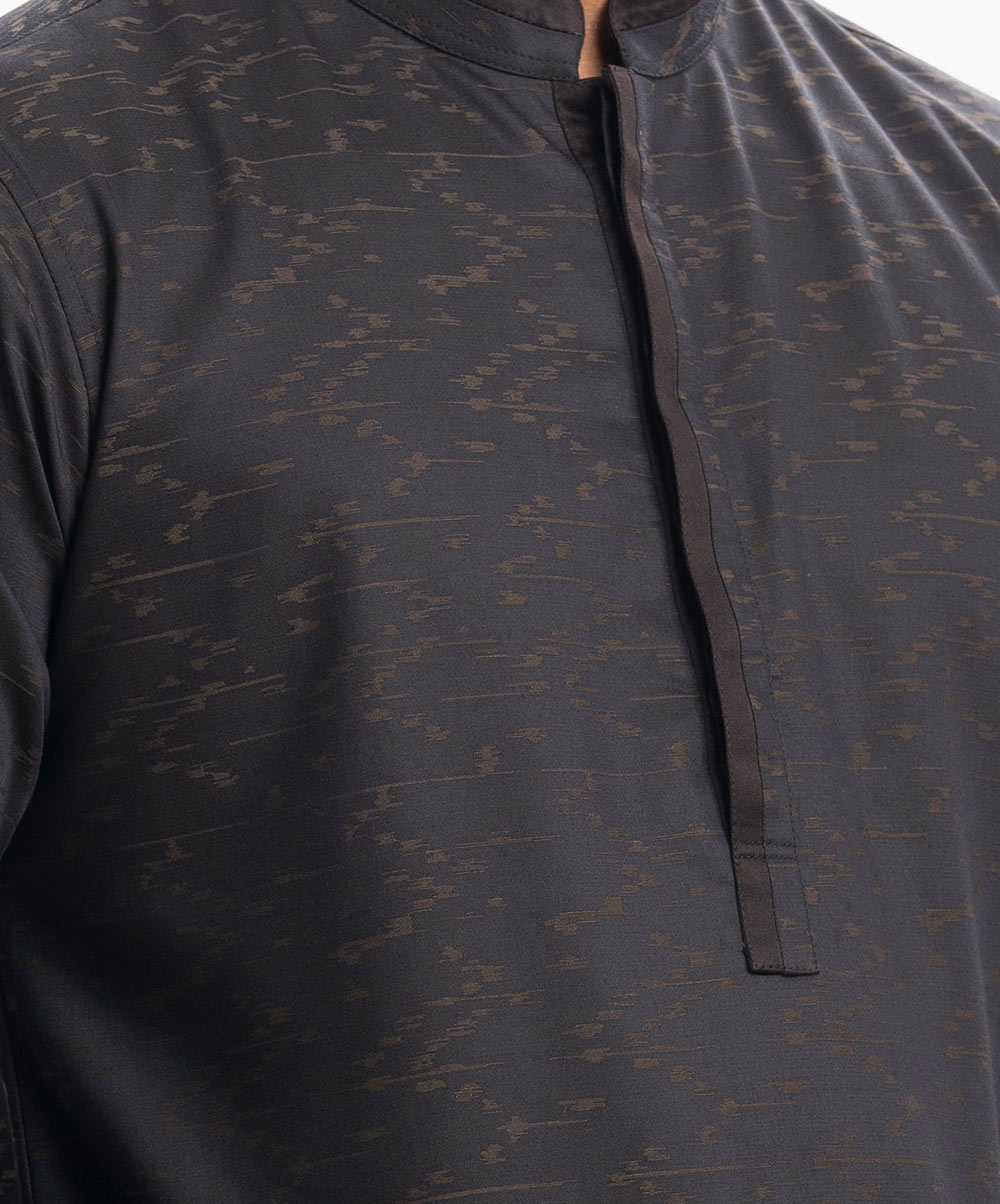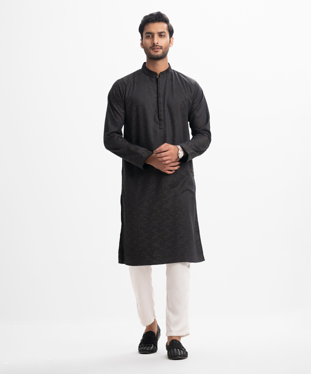 Fitted panjabi in bamboo jacquard fabric. Hidden button placket, inseam side pockets.