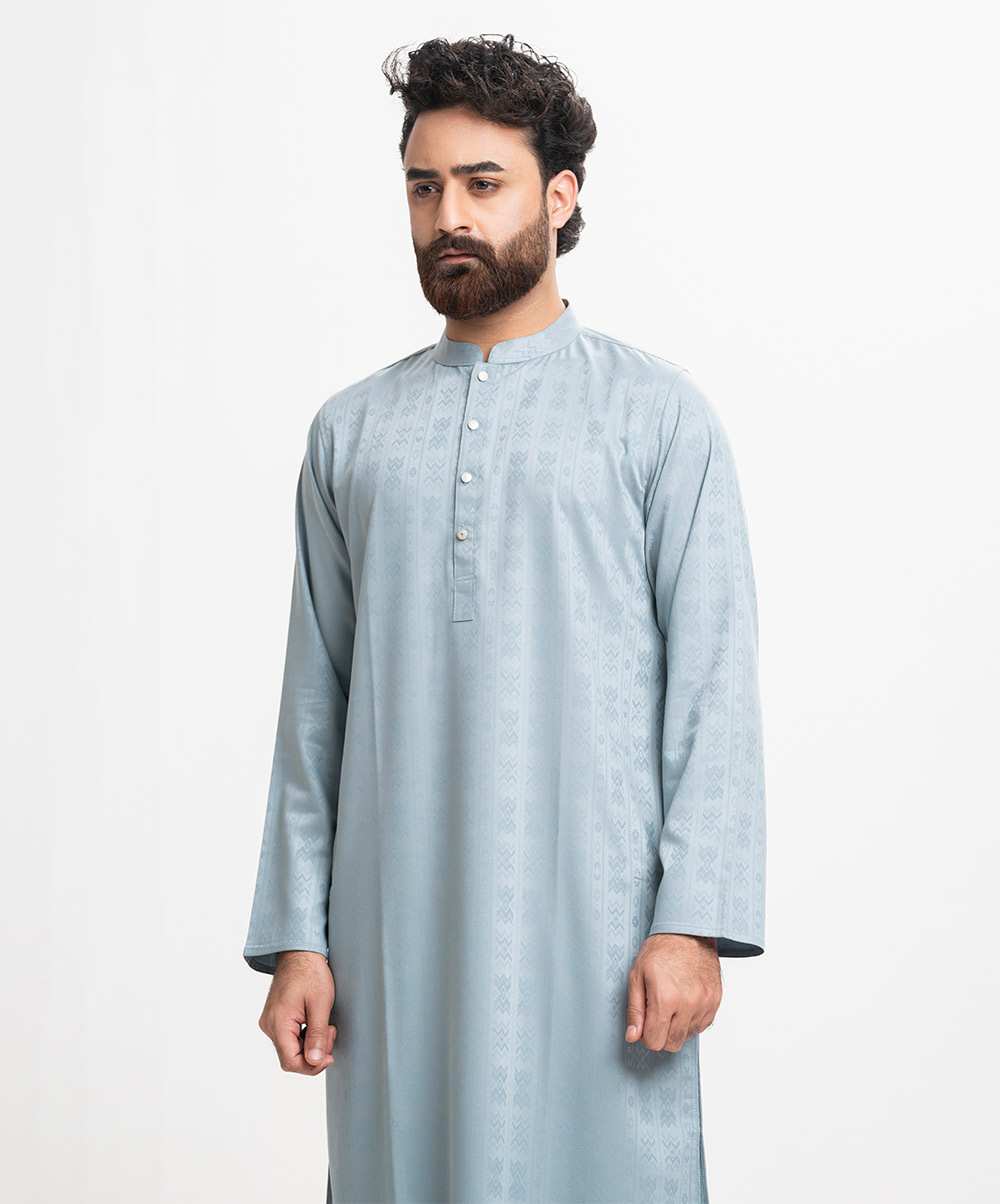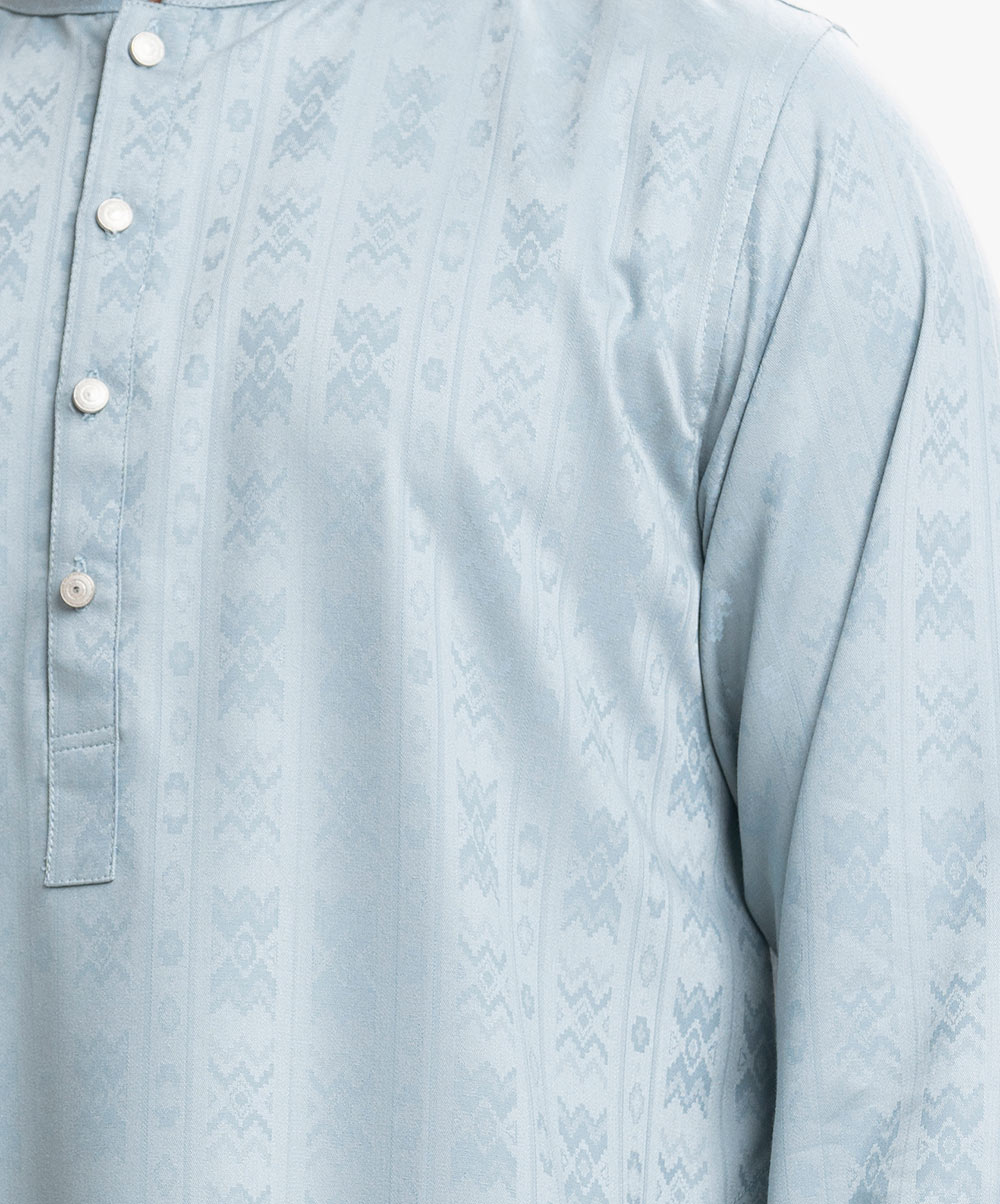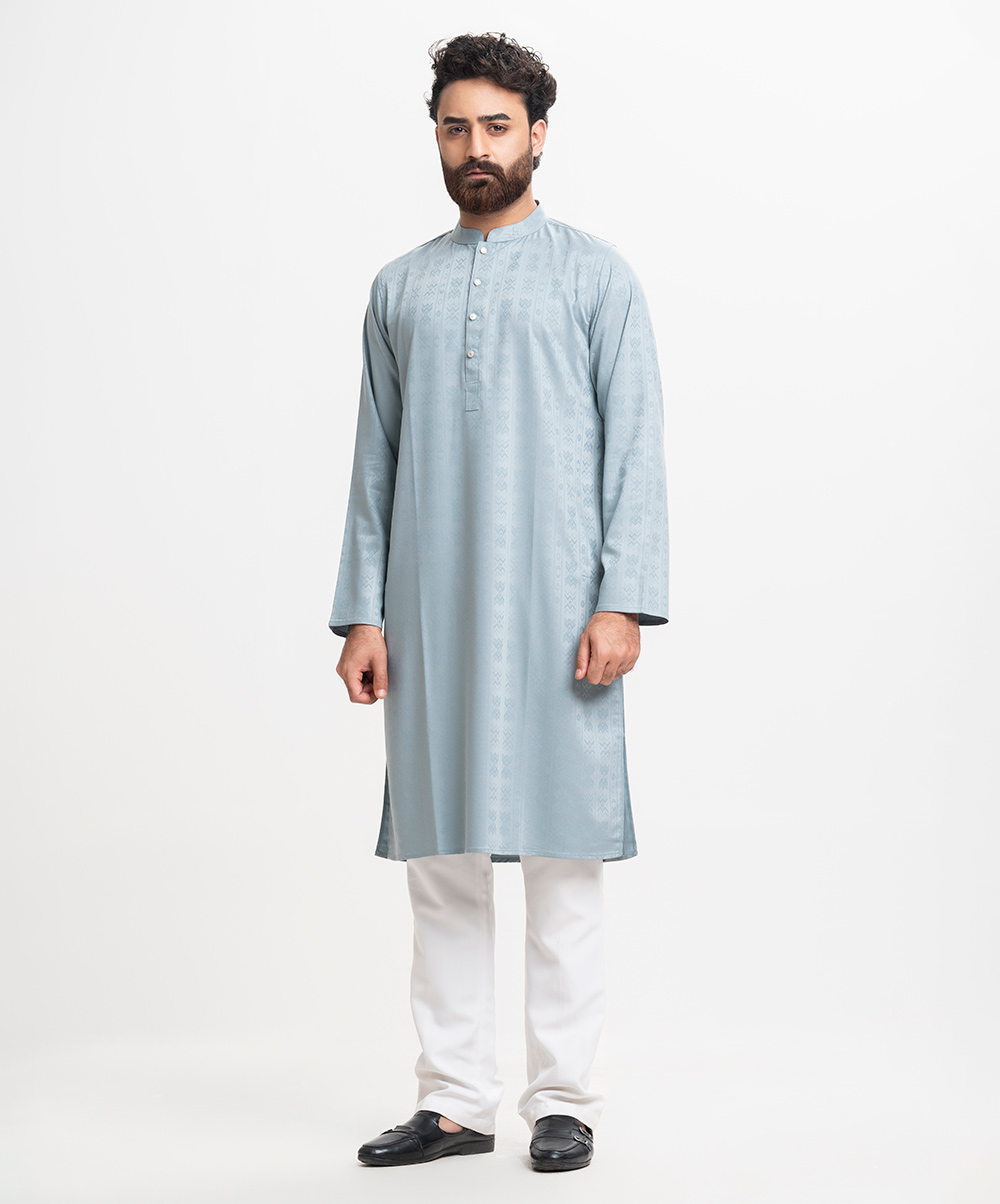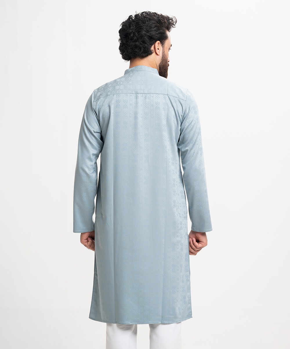 Fitted panjabi in premium bamboo-jacquard fabric.Inseam side pockets.