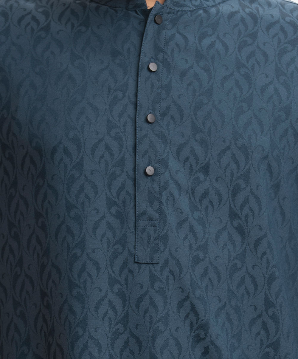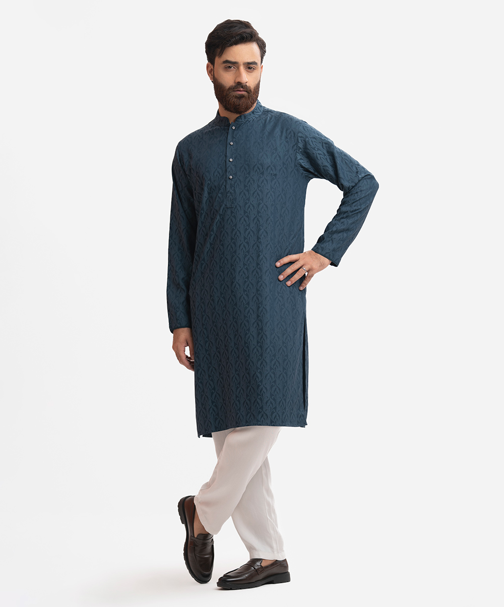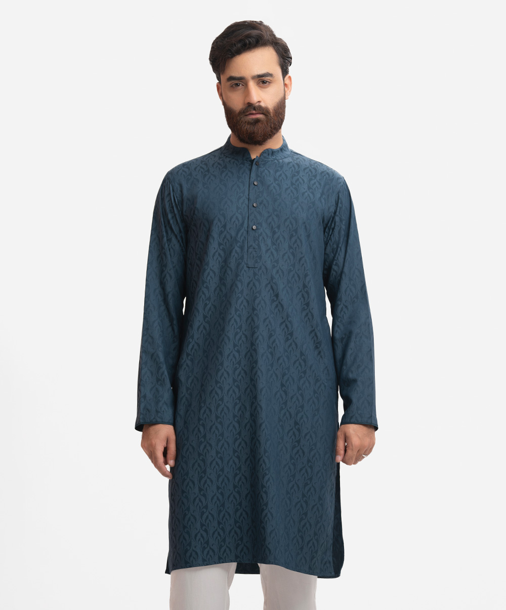Fitted panjabi in bamboo jacquard fabric. Long sleeves, inseam side pockets.