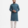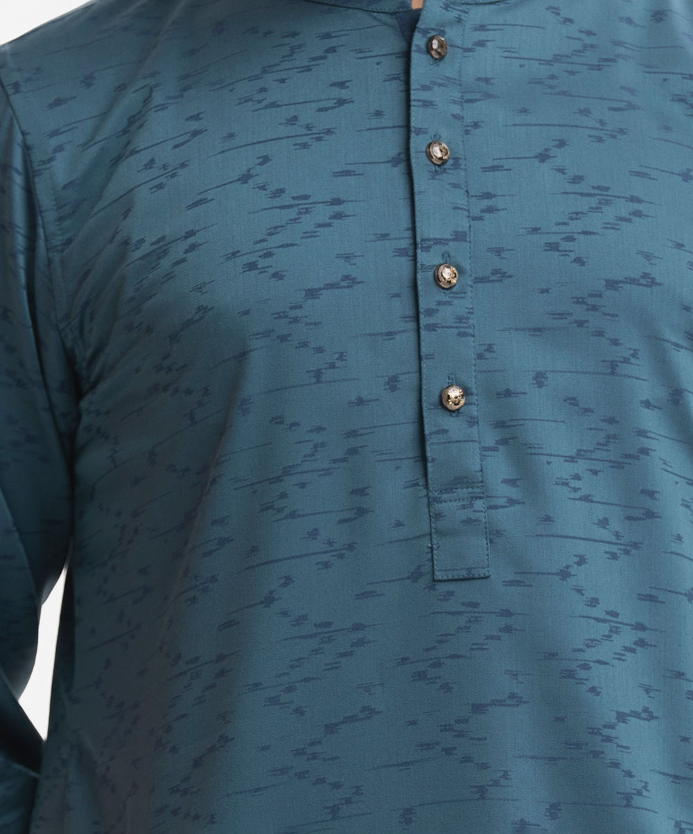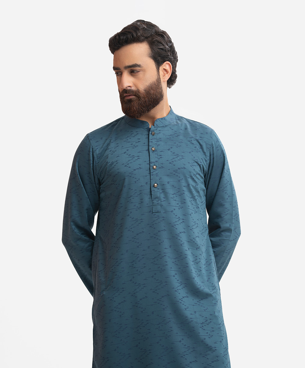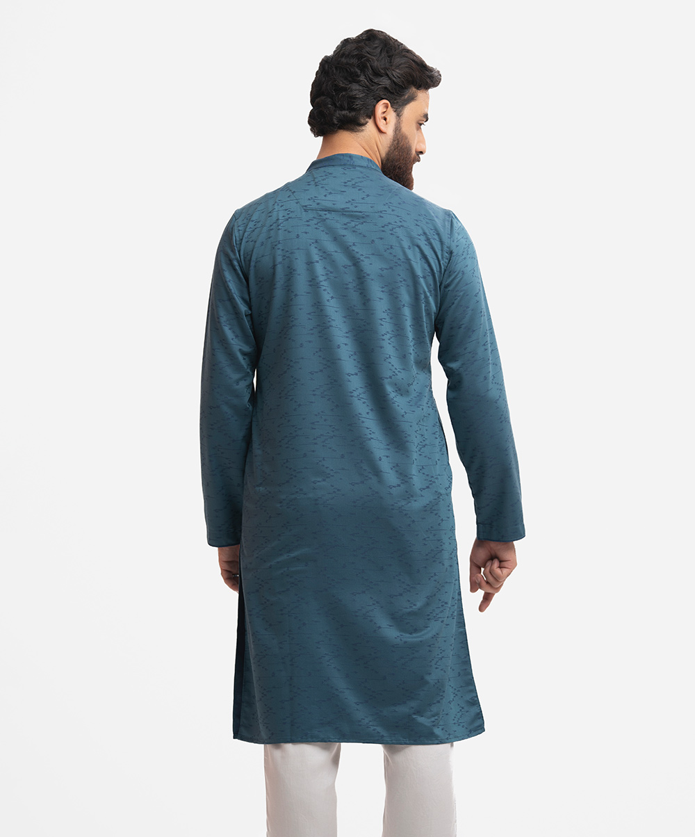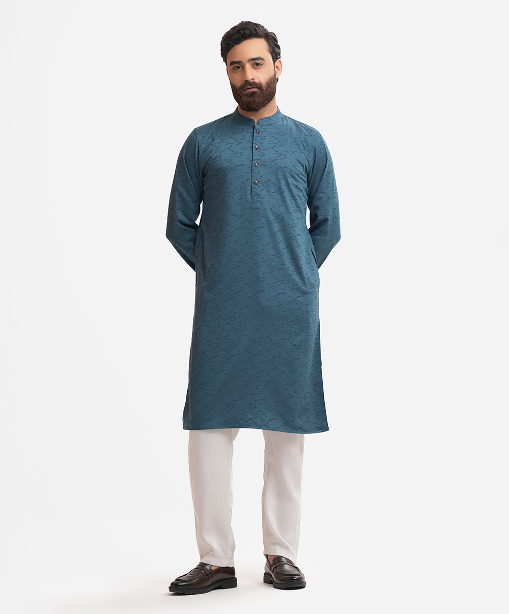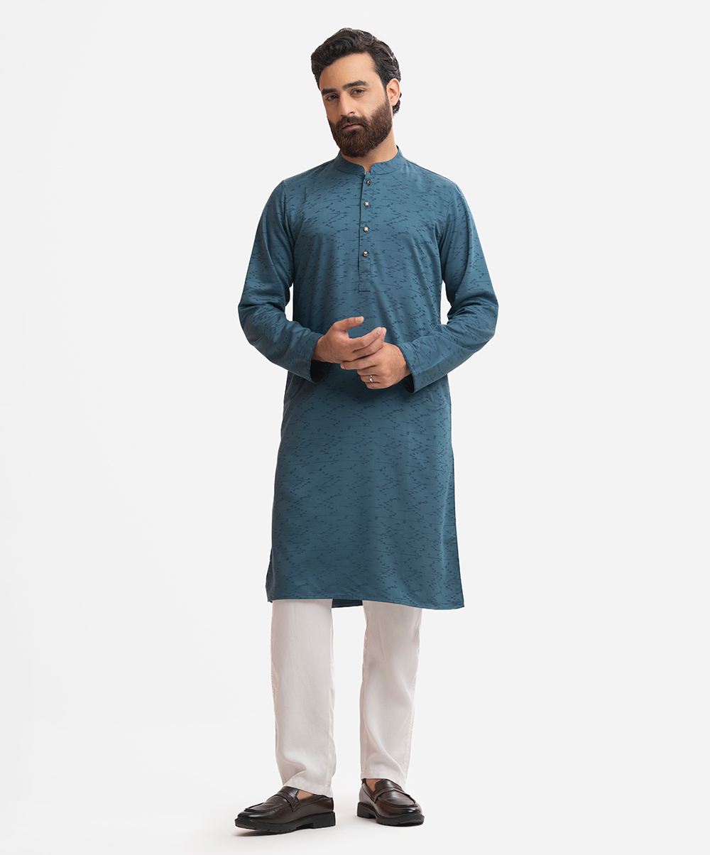 Classic fitted panjabi in bamboo jacquard fabric. Long sleeves, inseam side pockets.