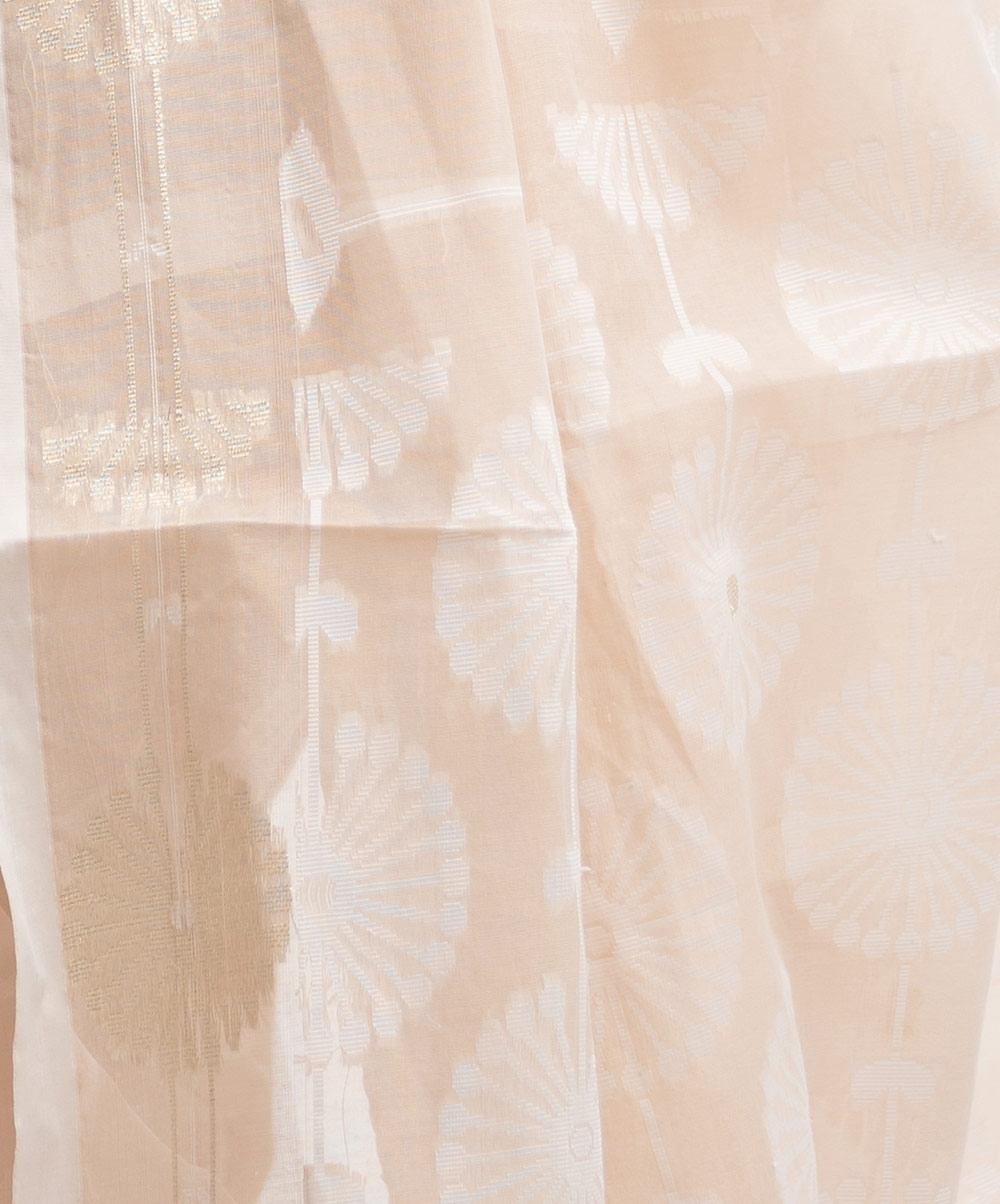 All-over weaving details saree in half-silk fabric. Tassels at the border of Aanchal.