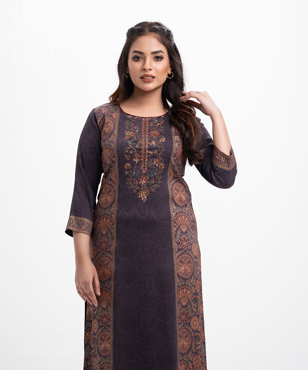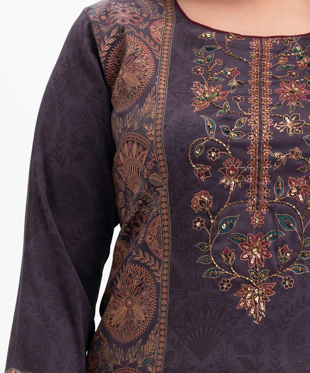 Mauve Crepe Straight Kameez