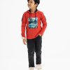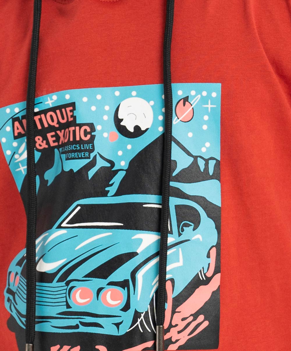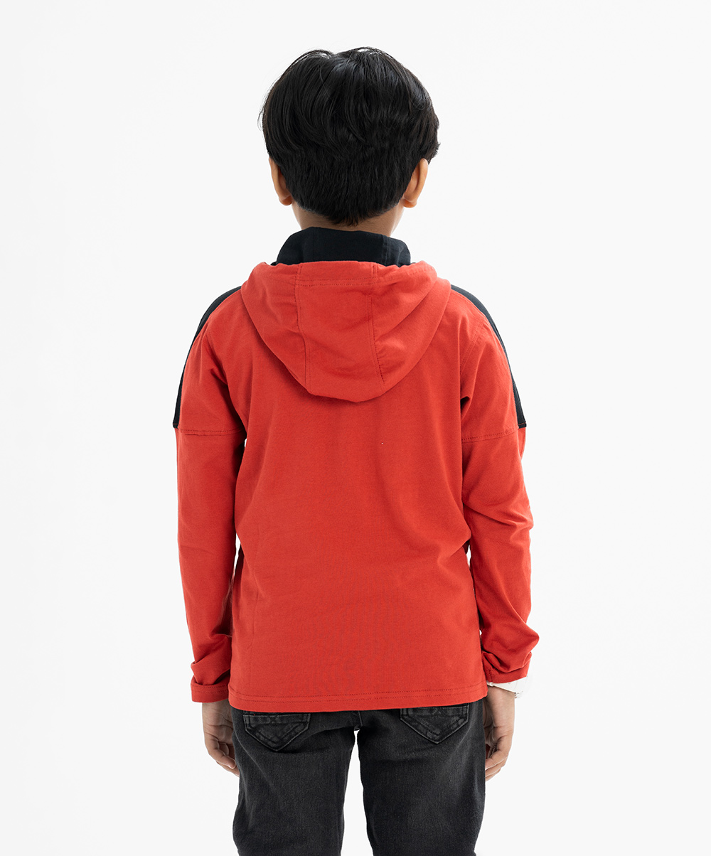 Red Cotton Long Sleeve Hoodie T-Shirt