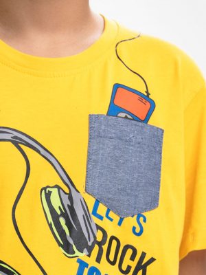 Kid boys henley t-shirt in cotton single jersey fabric. Rounded scoop neckline with front buttons placket, short sleeves and a chest pocket.