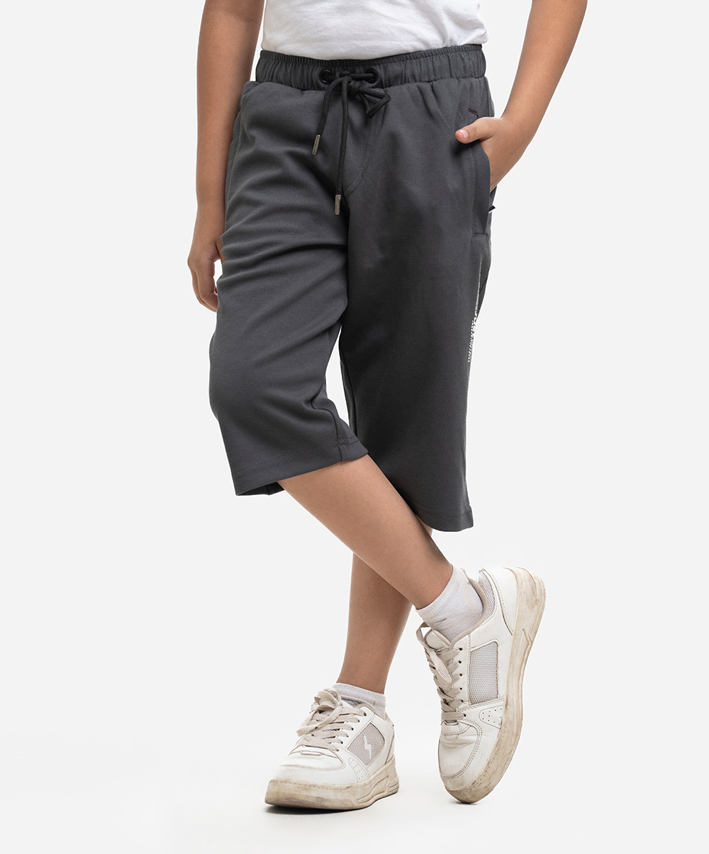 Dark Gray Interlock Knit 3 Quarter Pant