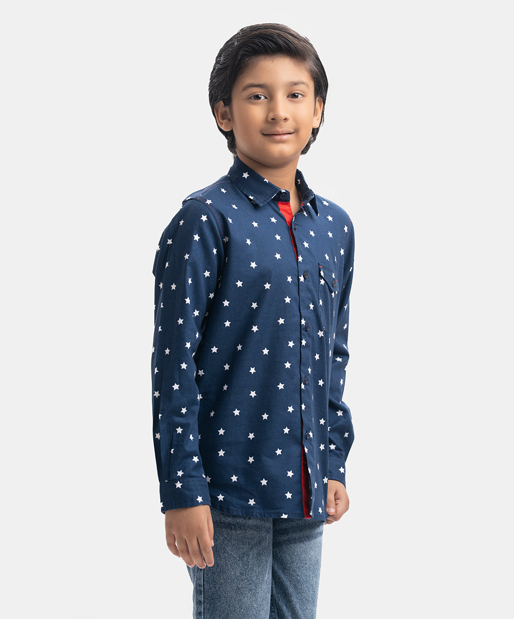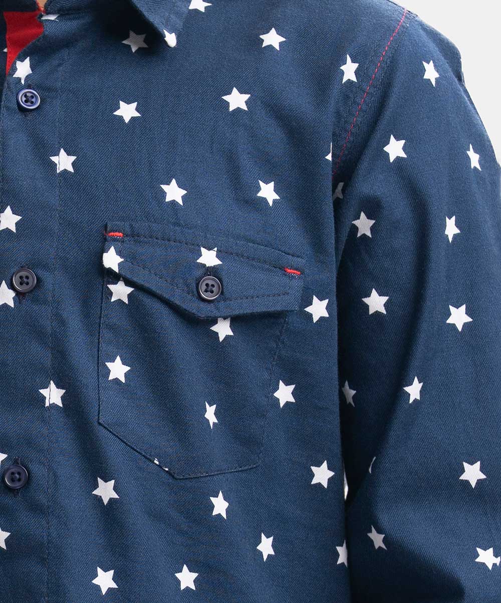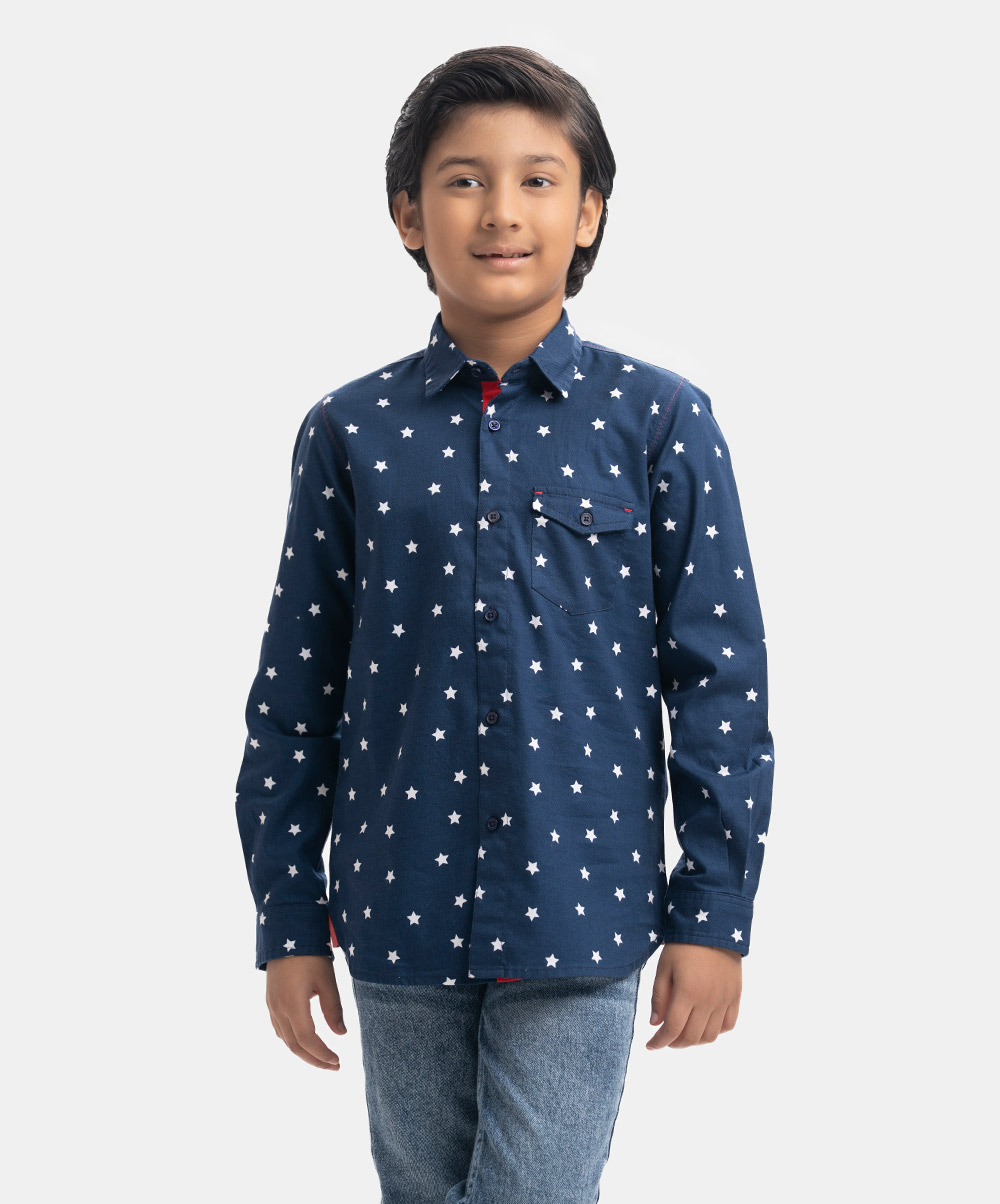 Classic cotton twill shirt with long sleeves. Single flap pocket on the chest.