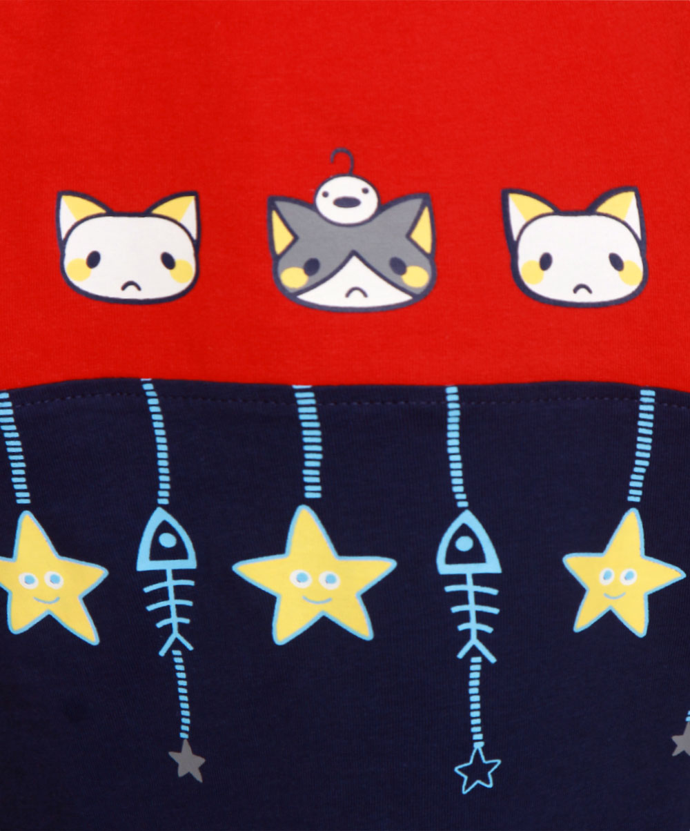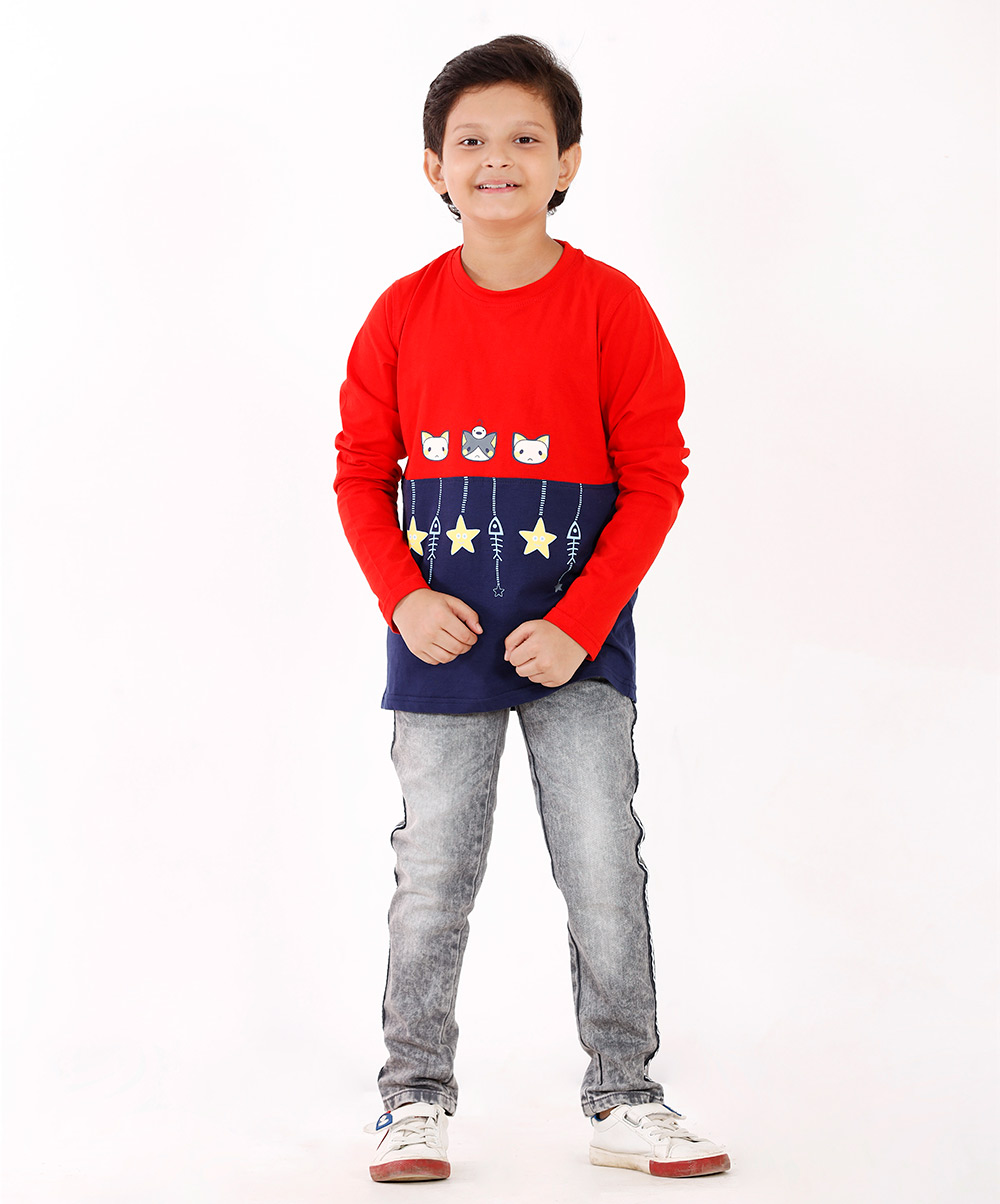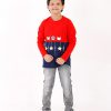 Red and blue color block sweater with funny graphics: Could be the nicest way to celebrate Christmas too !