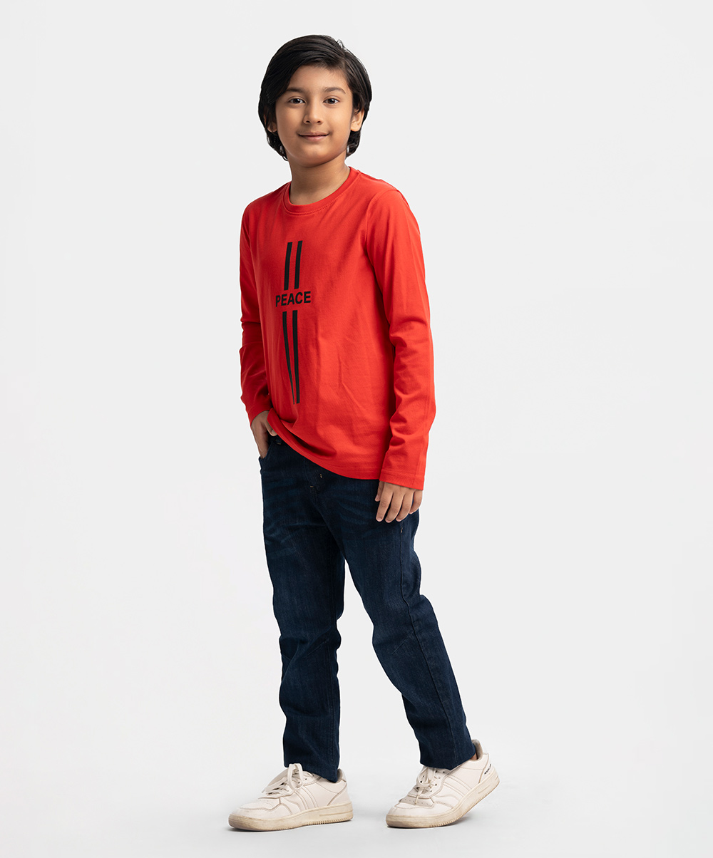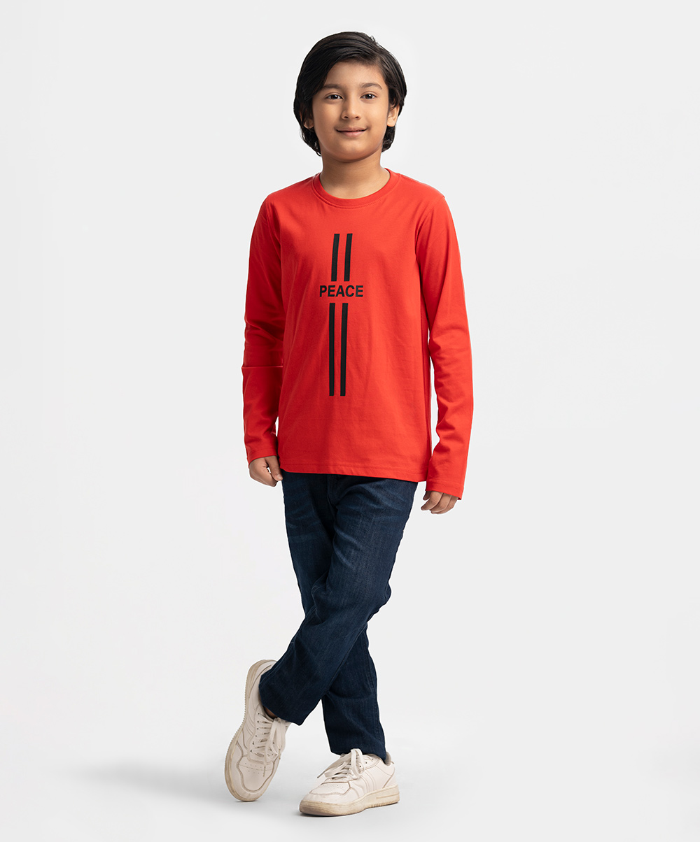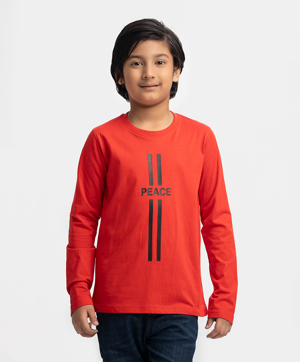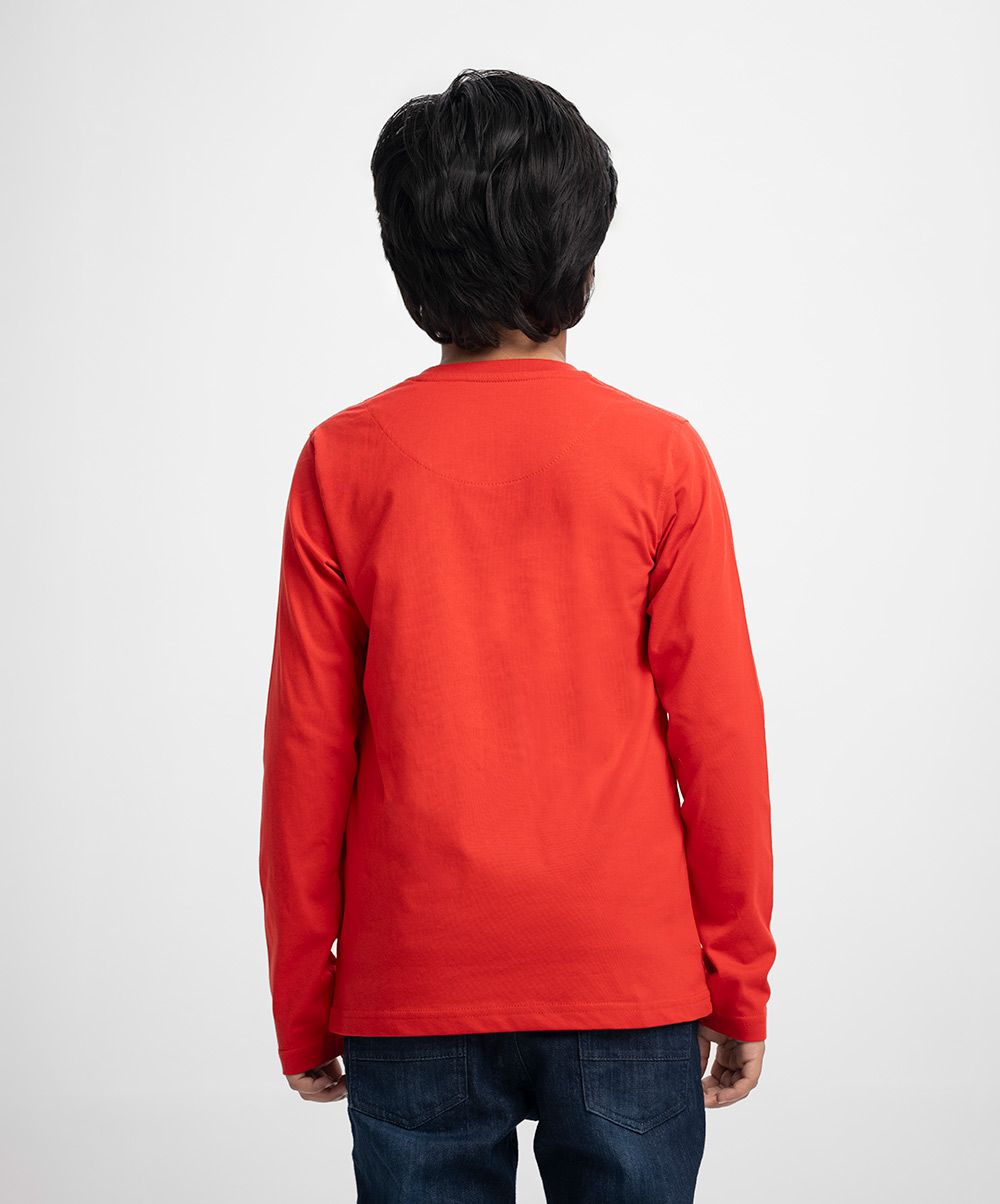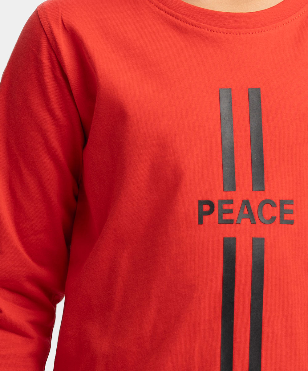 Kid boys t-shirt in cotton single jersey fabric. Full sleeves, round neck. Print at front.