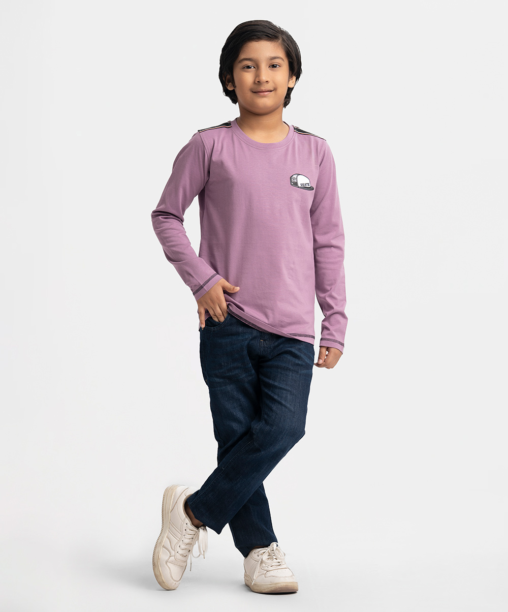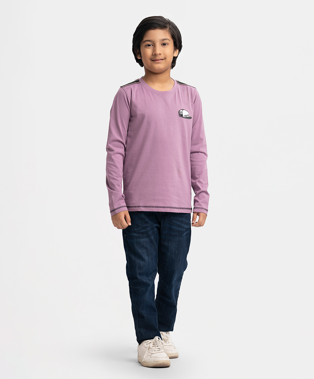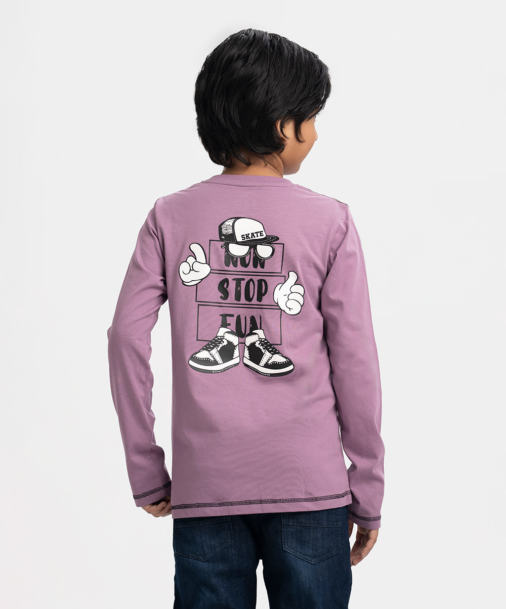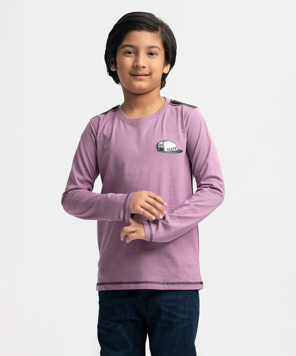 Kid boys t-shirt in cotton single jersey fabric. Full sleeves, round neck. Print at front.