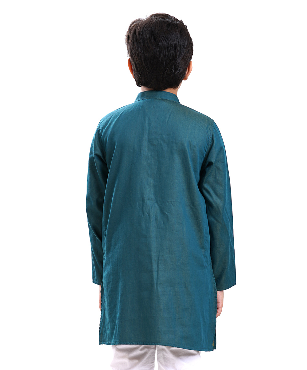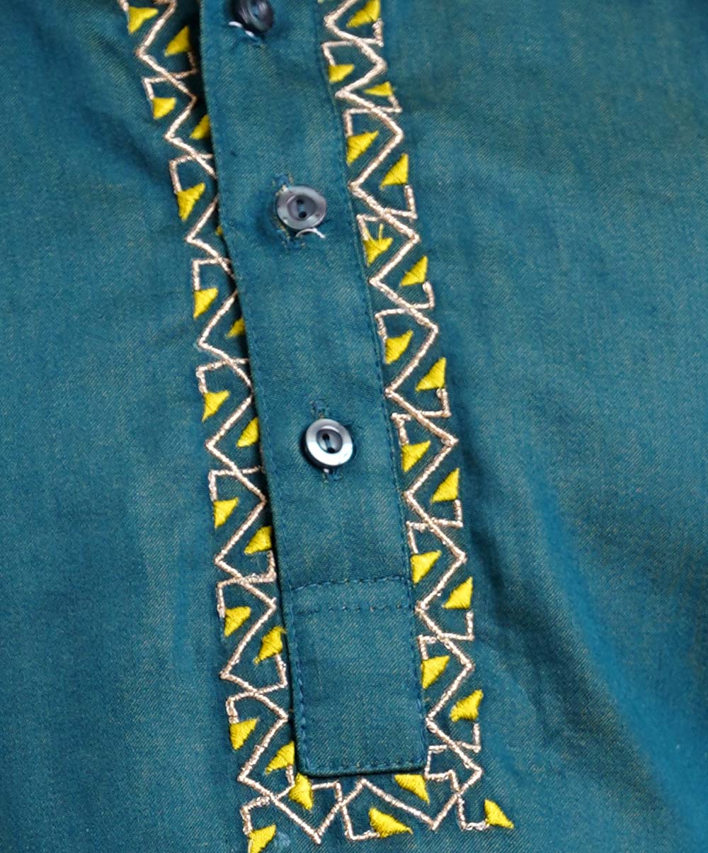 Blue Panjabi in Cotton fabric with embroidery and metal button.