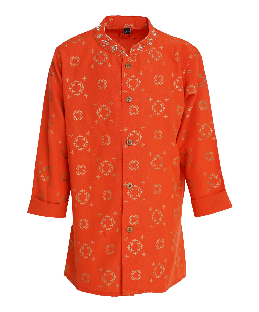 Orange printed with karchupi work only collar.