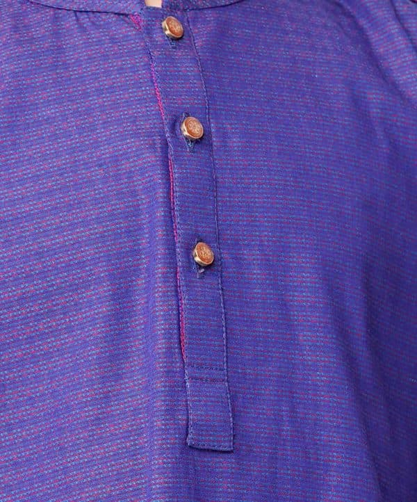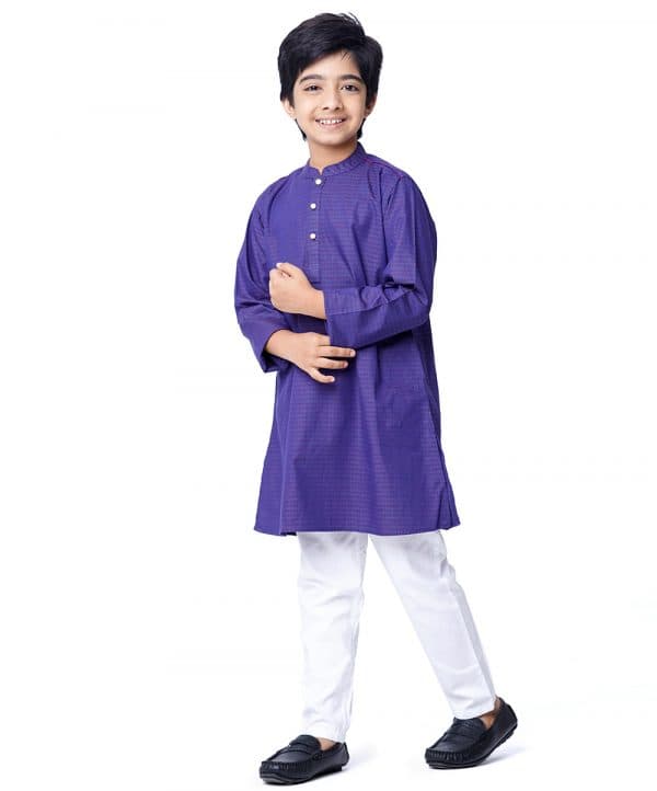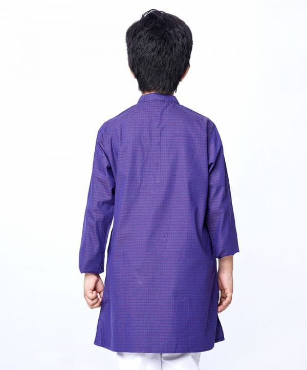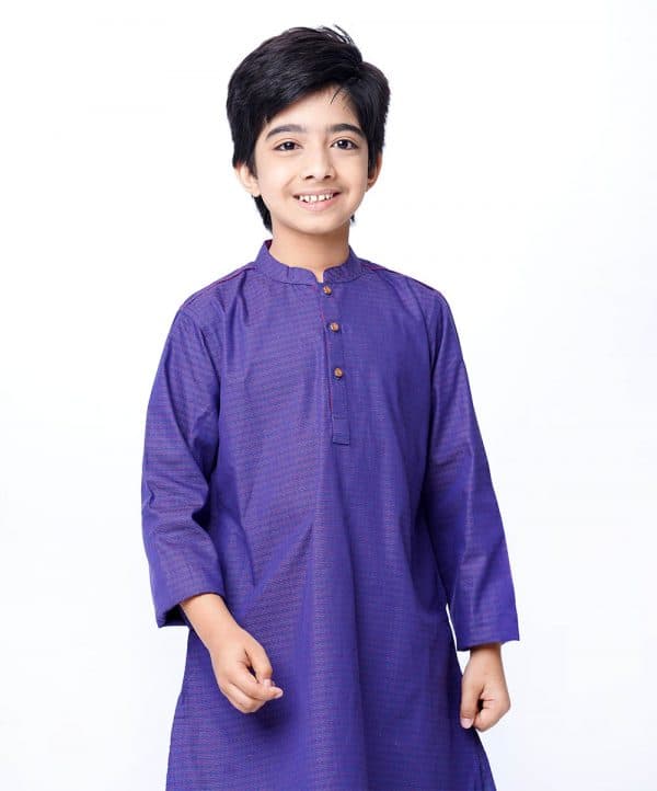 Blue Panjabi in Jacquard Cotton fabric. Designed with a mandarin collar and metal button opening on the chest.