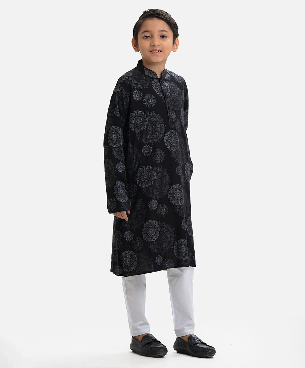 Kid boys mandala printed panjabi in viscose fabric. Mandarin collar and inseam pockets.