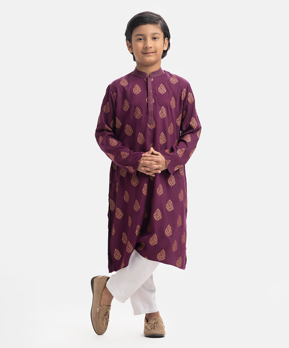 Classic viscose panjabi with inseam side pockets and stitches on the collar and hidden button placket.