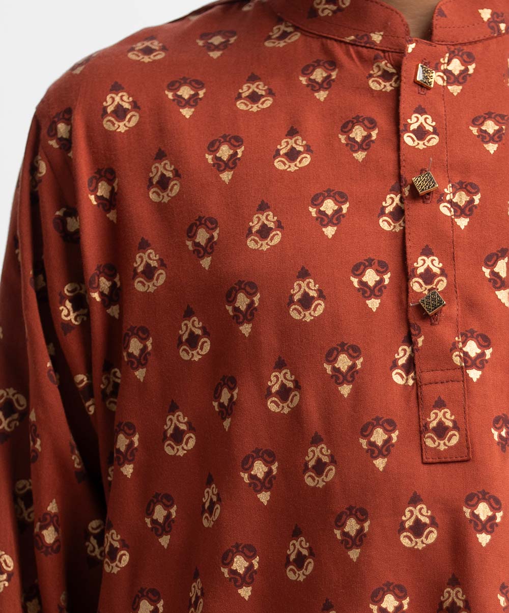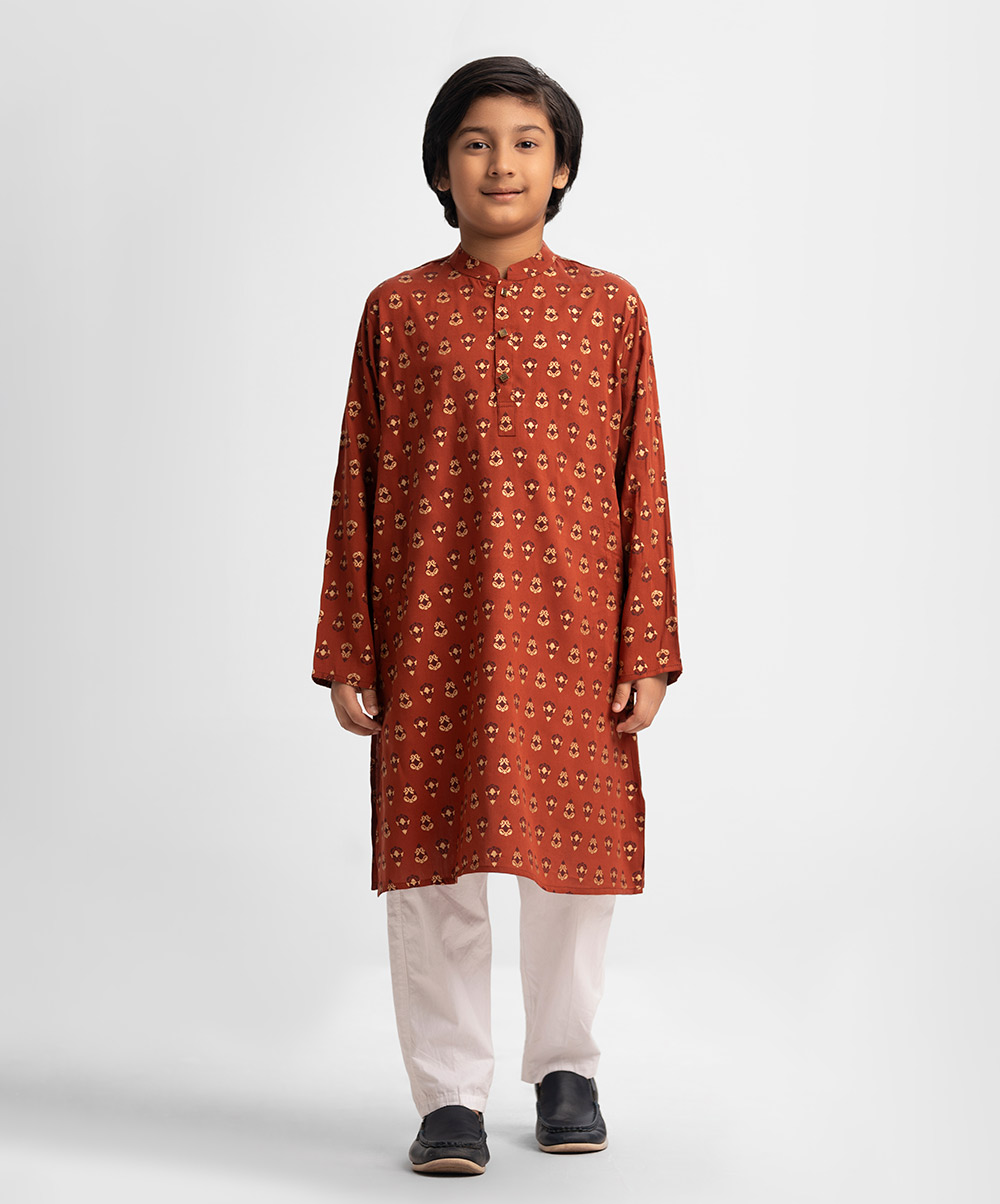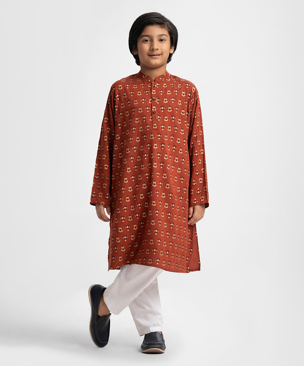 Brown Viscose Kids Panjabi
